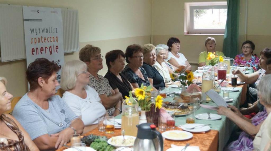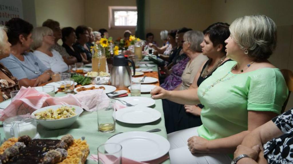 Warsztaty kulinarne związane z tradycjami Śląska przygotowane zostały przez gospodynie z Błędowej Tyczyńskiej w dniu 5 sierpnia. Było to już trzecie spotkanie w projekcie. Na wstępie zaprezentowane zostało tło historyczne, dane geograficzne tego regionu, następnie charakterystyczne zabytki, zwyczaje i ciekawostki dotyczące gwary śląskiej. Kuchni regionalnej można było posmakować dzięki zupie z kalarepy z jarmużem, która dzięki tym składnikom bogata jest w mikro i makroelementy. Podana została także sycąca sałatka ze śledzi i ziemniaków, zwana na Śląsku szałot. Na stole pojawiły się również smażone cebulki, które mają być śląską odmianą chipsów, doskonały dodatek do piwa. Na osłodę pojawiły się ciasta i ciasteczka, jedne z nich nazywane są haferfloki. I jak to na Śląsku bywa przy stole nie mogło zabraknąć biesiadnych przyśpiewek. Najpopularniejsza z nich i najbardziej znana to: ?Poszła Karolina do Gogolina?. Po degustacji i śpiewie przyszedł czas na sprawdzenie wiedzy o Śląsku wśród uczestniczek spotkania. Pytania były trudne, ale panie świetnie sobie poradziły i wykazały się uważnością w trakcie warsztatów. Kolejny warsztat już wkrótce, a poniżej można podziwiać zdolności kulinarne pań z Koła Gospodyń w Błędowej Tyczyńskiej.