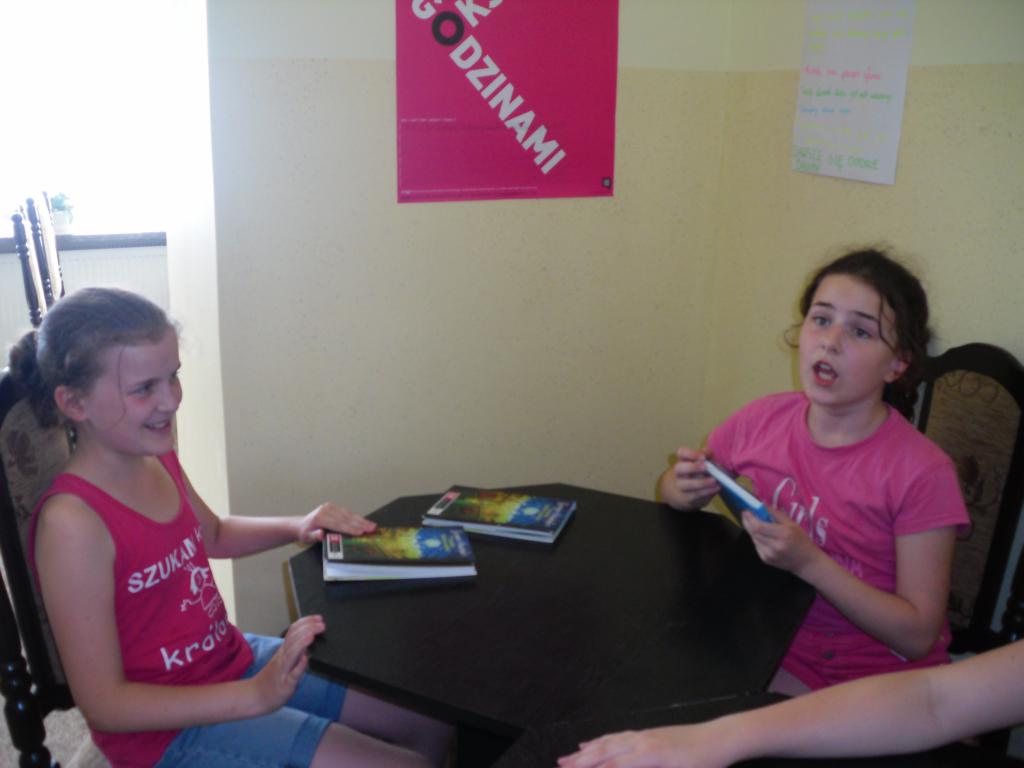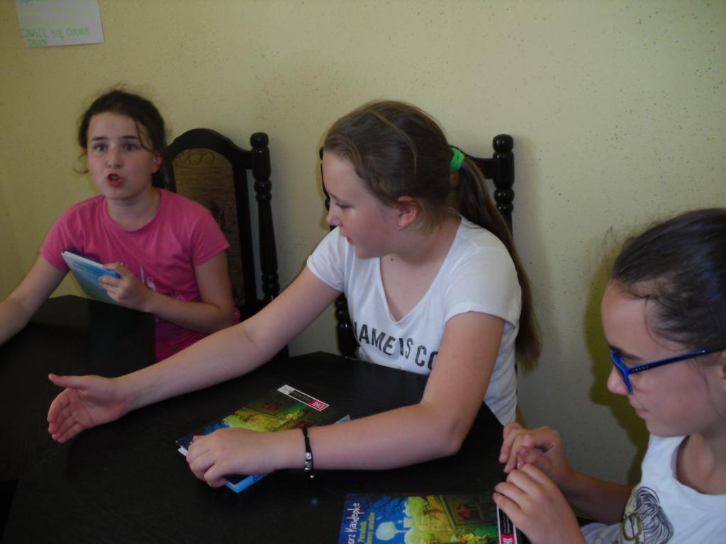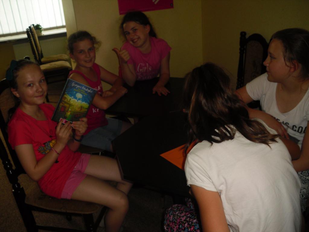 Za nami czerwcowe spotkanie Dziecięcego Dyskusyjnego Klubu Książki, oraz rozmowa nad pierwszą , przeczytaną w ramach DKK pozycją. Była to książka Grzegorza Kasdepke "Poradnik hodowcy aniołów". Jest to utwór dla starszych dzieci, który tylko z pozoru wydaje się być łatwy, lekki, nie wymagający od nas skupienia. W trakcie czytania poznajemy coraz to nowe wątki, tematy i problemy, które krążą wokół głównej bohaterki Marty. Marta ma 11 lat i mieszka w bloku razem z mamą, tatą, młodszym bratem Rysiem oraz ciocią Irenką. Jest ona dziewczynką bardzo wrażliwą, pragnie uwagi i obecności rodziców, a z tym niestety bywa różnie. Mama jest rozżalona, ma o wszystko pretensje, a do tego sięga po alkohol. Tato, chciałby umieć z Martą rozmawiać, ale nie potrafi, jest niezaradny, ciągle usuwa się w cień. Udaje że problemy same się rozwiążą. Rysio, jako młodszy brat skupia na sobie całą uwagę dorosłych i często to wykorzystuje. Najbardziej zachwycona jest nim ciocia Irenka. No właśnie, ciocia. Dla Rysia miła, czuła, chciałaby przychylić mu nieba. Dla Marty oschła, zrzędząca, ciągle ma do dziewczynki pretensje. Są jeszcze anioły? Mieszkają w ogródkach działkowych sąsiadujących z osiedlem Marty. Nie wszyscy o nich wiedzą. Marta należy do nielicznych. Dziewczynka bardzo chce poznać owe anioły i pana, który się nimi opiekuje. Jednak to wiązałoby się z samodzielnym wyjściem poza osiedle. A tego Marcie robić nie wolno. Chciałaby powiedzieć o swoim odkryciu rodzicom, ale wie, że jej nie zrozumieją. Może tata, ale on nie będzie wiedział co z tą wiedzą zrobić. Marta postanawia pewnego dnia złamać zasady. Zabiera ze sobą brata i idą szukać aniołów. Wiąże się to z niebezpieczeństwem, o którym dziewczynka nie wie. Pośród altanek schowany jest bowiem dom czarownicy? Wszystko na szczęście skończy się dobrze. Anioły uratują nie tylko Martę i jej brata Rysia, ale sprawią, że cała rodzina odnajdzie nareszcie drogę do siebie.