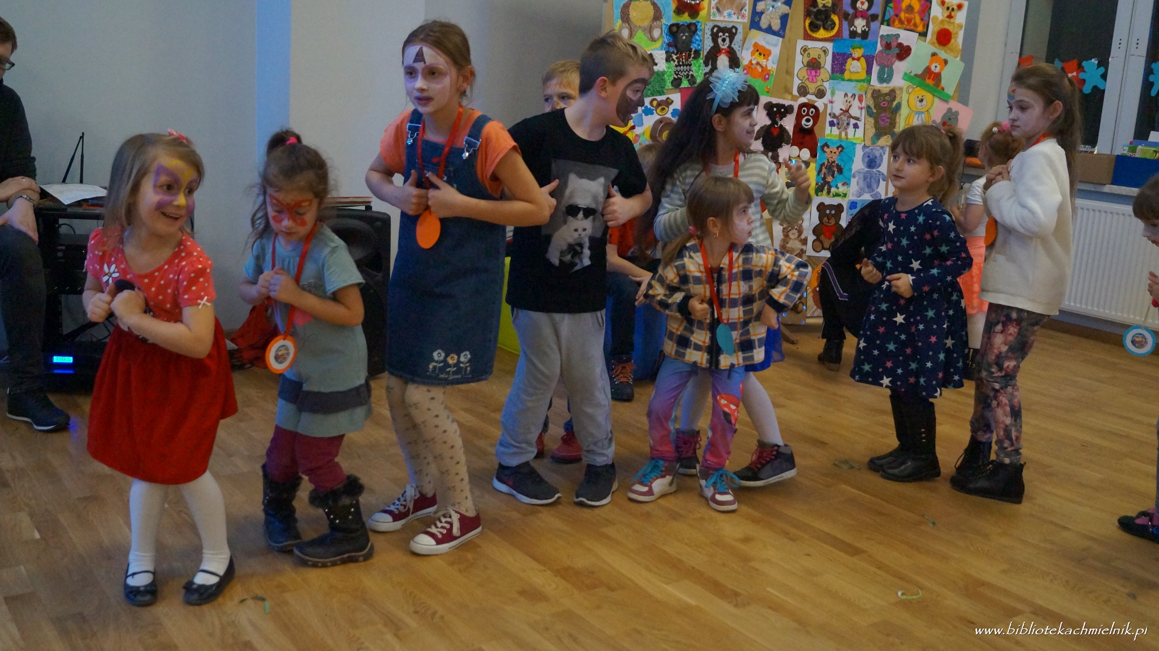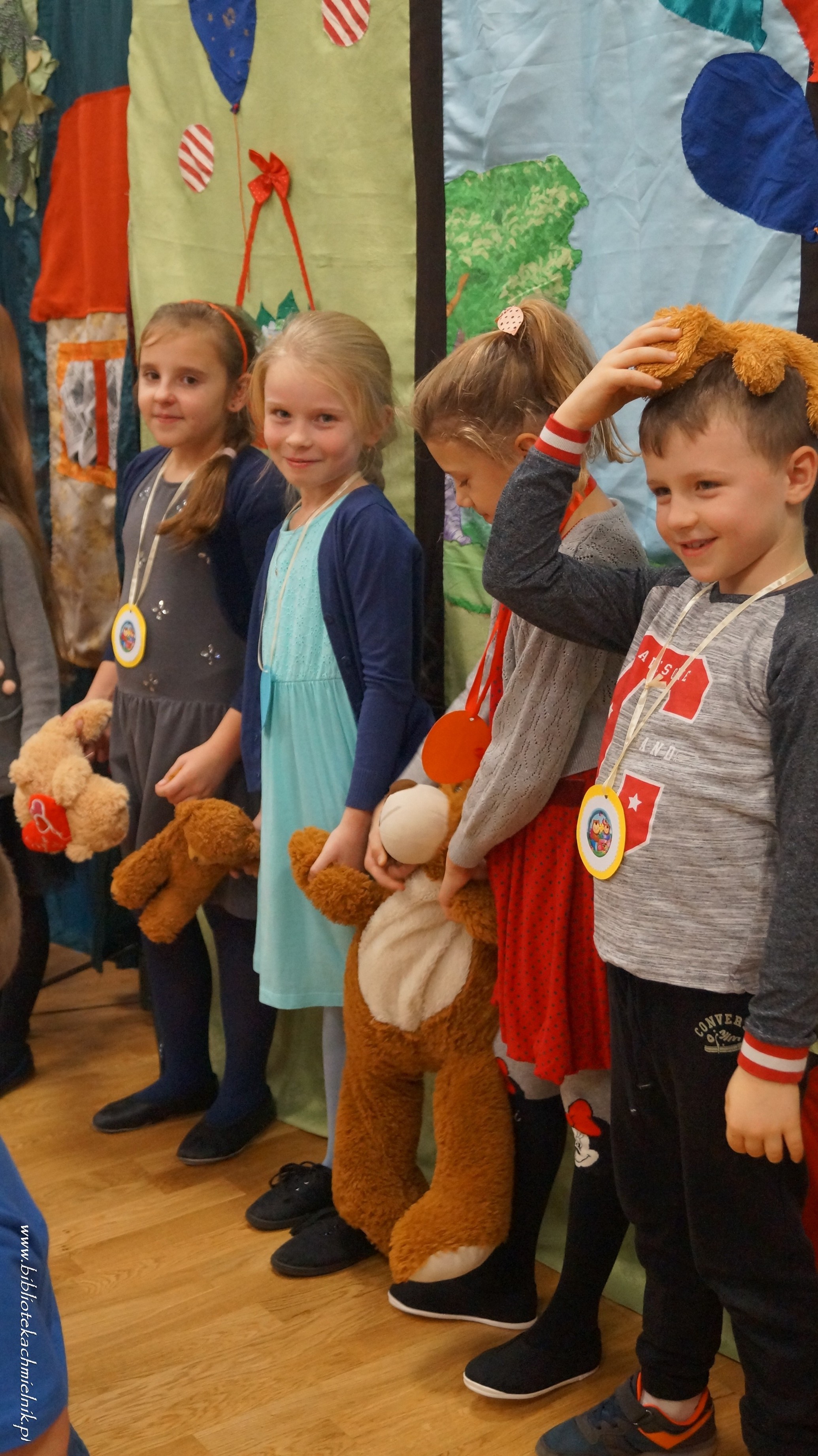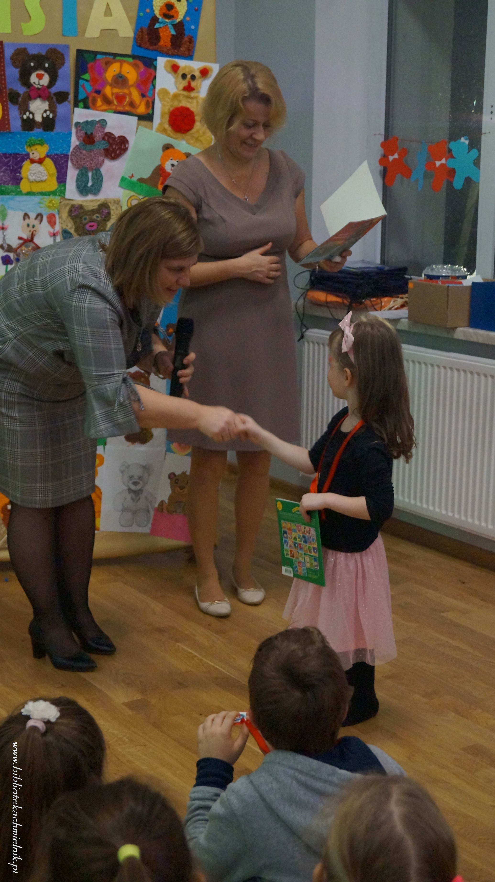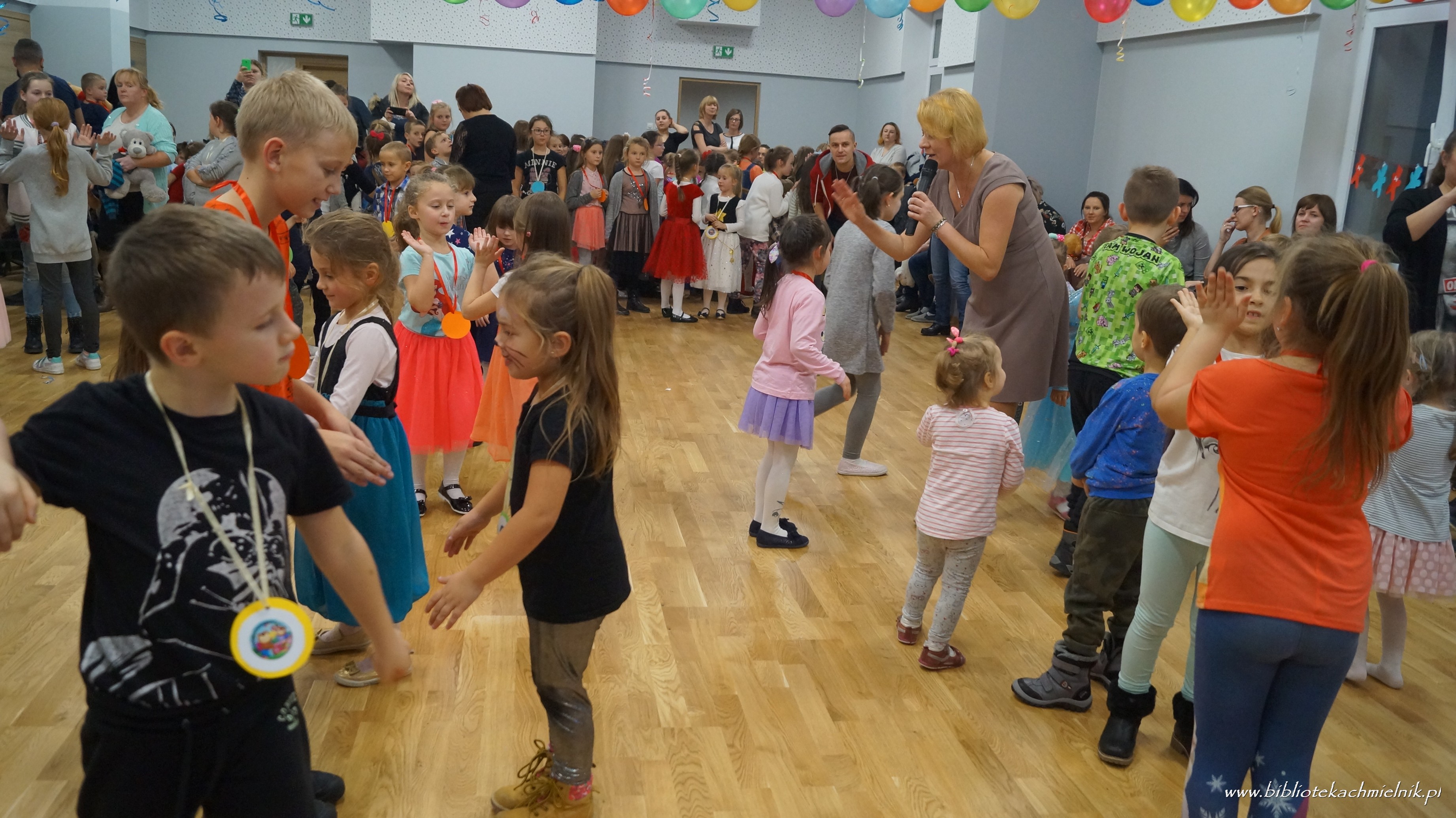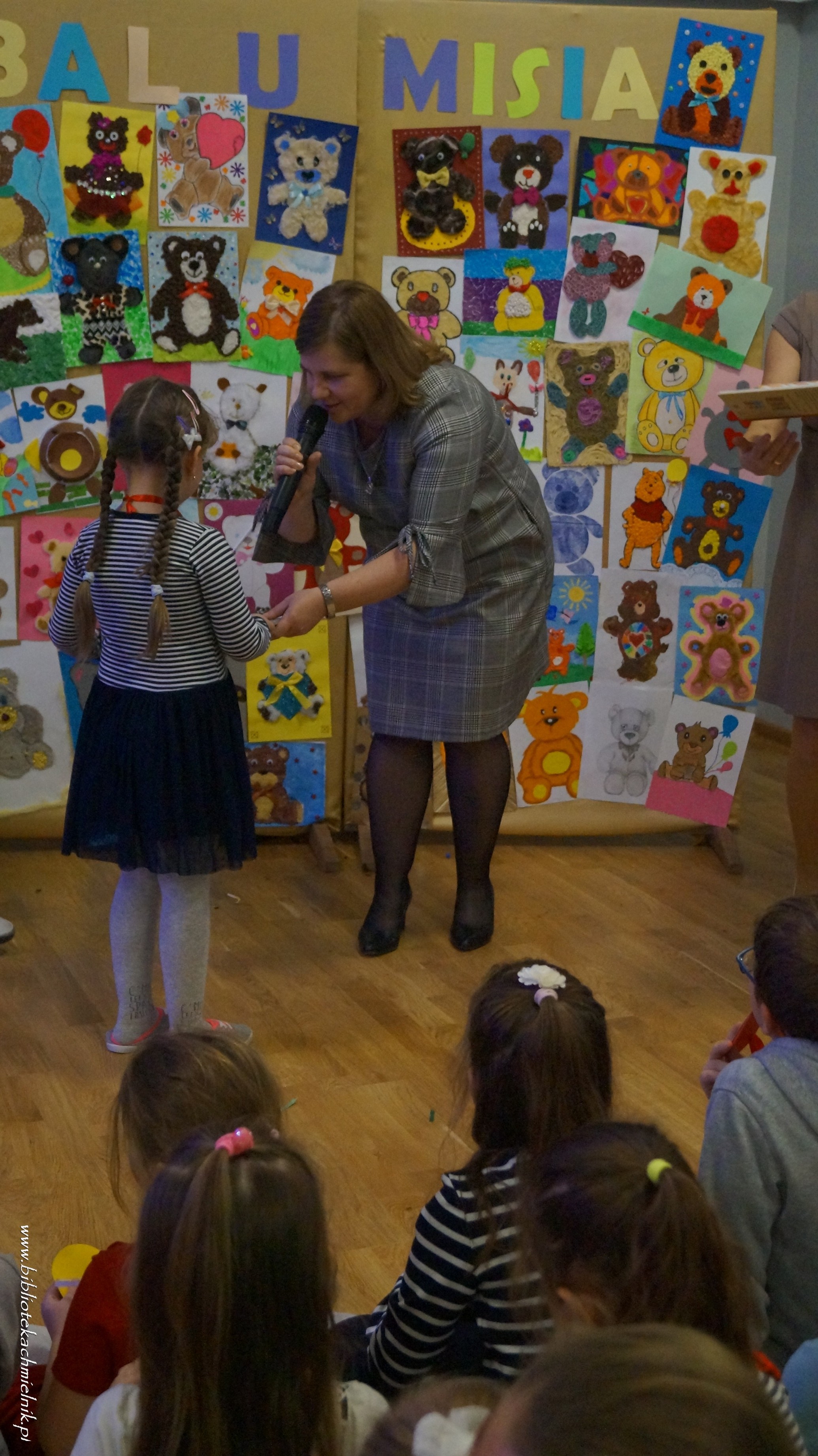 Miś, najukochańsza zabawka dzieci jest z nami już 116 lat. Jej posiadanie jest niezwykle ważne dla rozwoju emocjonalnego, dlatego Maluchy są często zasypywane różnymi maskotkami, ale tylko jedna z nich w efekcie staje się tą najważniejszą. Dzieci w ten sposób zyskują poczucie bezpieczeństwa i w tym małym pluszowym misiu mają wiernego przyjaciela, powiernika, towarzysza dziecięcych zabaw, przytulankę. Misie są zabierane na spacery, na obiadek, do lekarza i do łóżeczka. Czasami to miś pierwszy dowiaduje się o wszystkim co dla dziecka ważne, a nawet ociera łzy. O tym jak bardzo dzieci lubią misie świadczyła frekwencja na "Balu u Misia", który został w tym roku zorganizowany w Chmielniku przez bibliotekarki-animatorki. Misiowe urodziny świętowało z nami 164 dzieci, ale tę liczbę trzeba podwoić, bo każde dziecko przyniosło ze sobą ukochanego misia. Wstępem do zabawy było przedstawienie teatralne "Bajowe przygody mojego misia" w wykonaniu grupy Edu-Artis. Na widowni zasiedli mali widzowie i ich pluszowi przyjaciele. Po zakończonym spektaklu każdy miał ochotę na wspólne zdjęcie z misiem-aktorem. Nie wszystkim się to udało, ale wszyscy mogli być na jednej grupowej fotografii. Po takim wstępie dzieci były gotowe na prawdziwy, taneczny bal. Tańcom i radości nie było końca, czasami trudno było dotrzymać kroku najlepszym balowym tancerzom, ale bardzo liczna grupa świetnie bawiła się na parkiecie uczestnicząc w zabawach animacyjnych, konkursach i tanecznej integracji. W przerwie między jednym, a drugim maratonem tanecznym, odbyło się bardzo wyczekiwane przez dzieci wręczenie nagród w konkursie plastycznym. Konkurs na "Portret Misia" zgromadził 174 prace, wykonane z dużą pomysłowości i różnymi technikami. Komisja konkursowa miała bardzo trudne zadanie i ostatecznie wybrała 60 laureatów. Nagrody książkowe trafiły do 46 uczestników konkursu, natomiast zestawy upominkowe do 14. Na "Balu u Misia" nie mogło zabraknąć "małego co nieco" i oczywiście miodku, misiowego przysmaku, który tym razem był dodatkiem do herbaty. Dodatkową atrakcją dla dzieci było malowanie buziek, w które przez cały czas trwania zabawy tanecznej zaangażowani byli członkowie nieformalnej grupy Strefa Kultury Młodzieżowej. Młodzi tancerze i ich misie zmęczeni, ale radośni odtańczyli ostatni taniec i razem ze swoimi pluszowymi przyjaciółmi wrócili do domów. Kolejne urodziny misia już za rok, ale może to nie będą jedyne taneczne harce jakie mamy w zanadrzu dla najmłodszych. Bądźcie czujni!