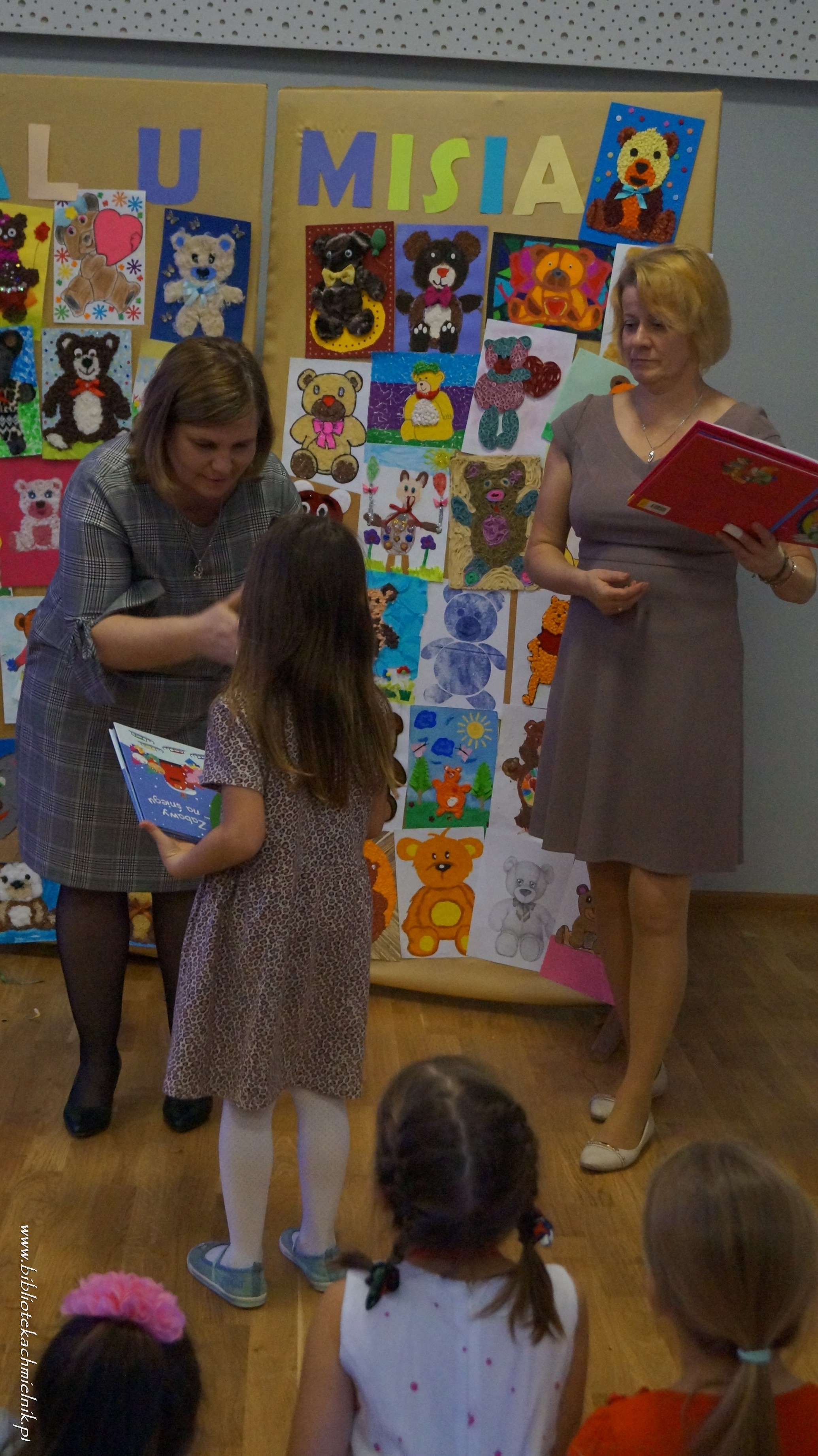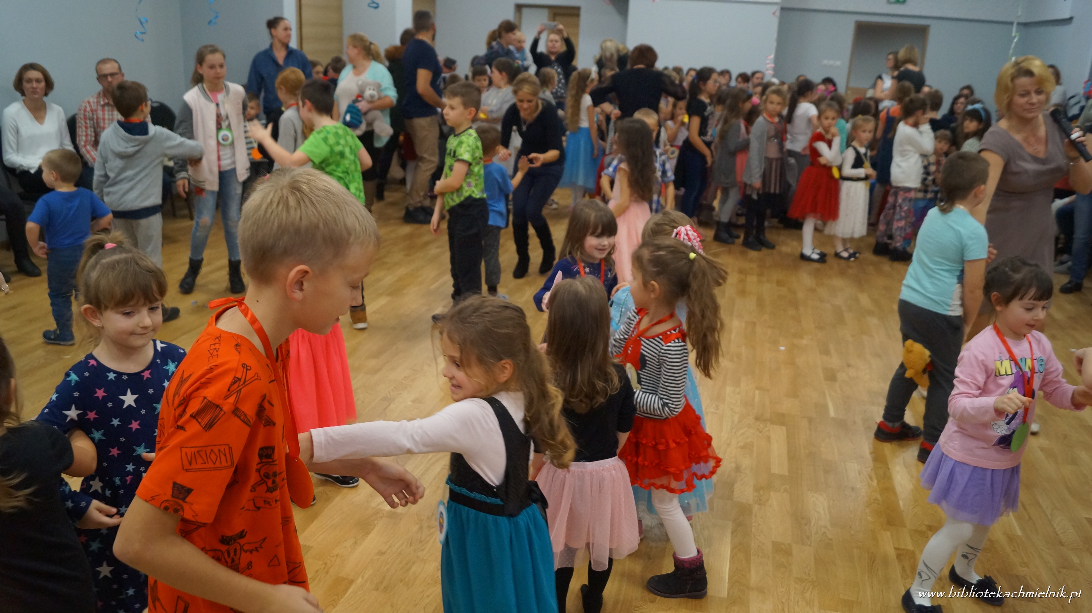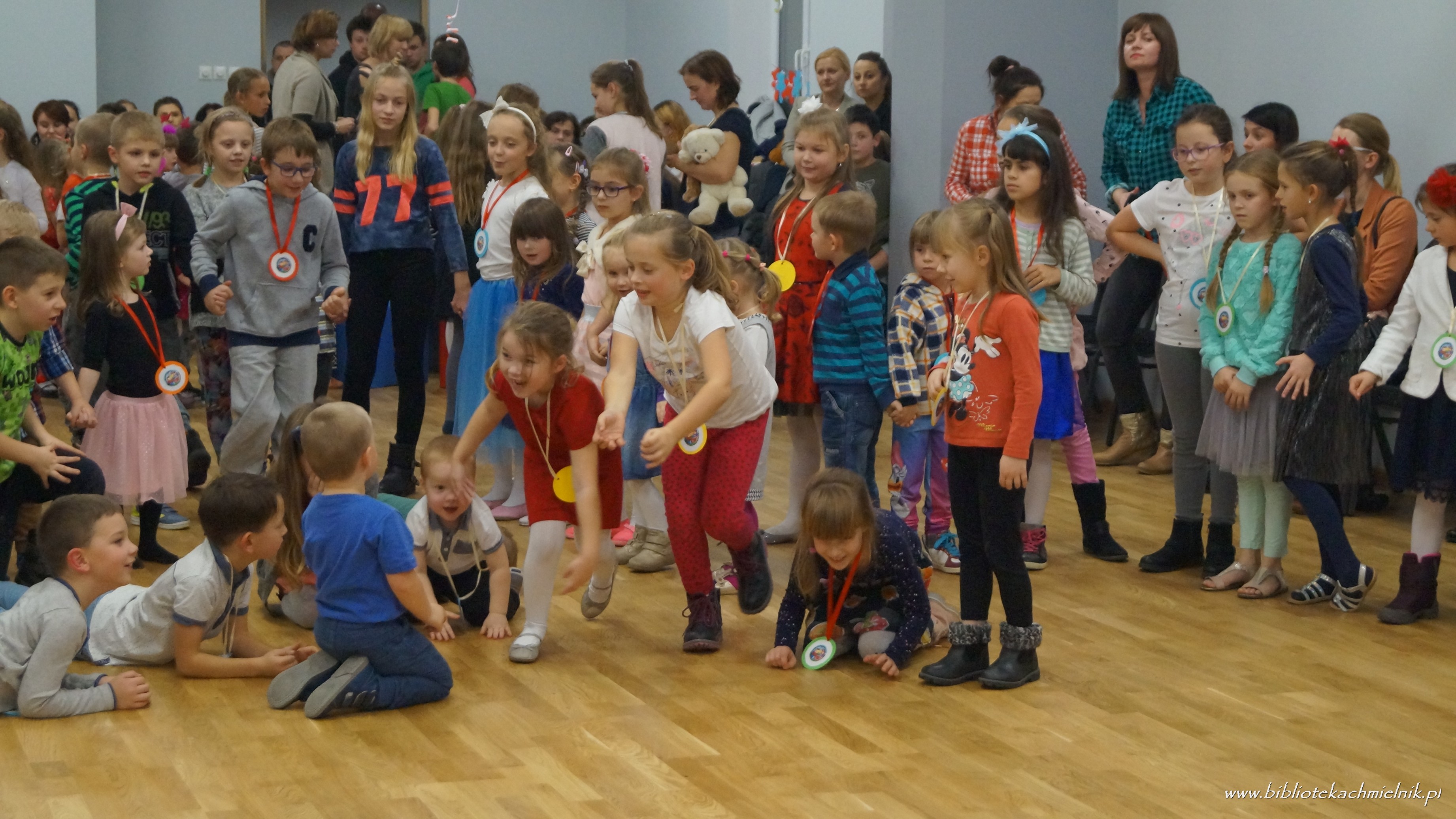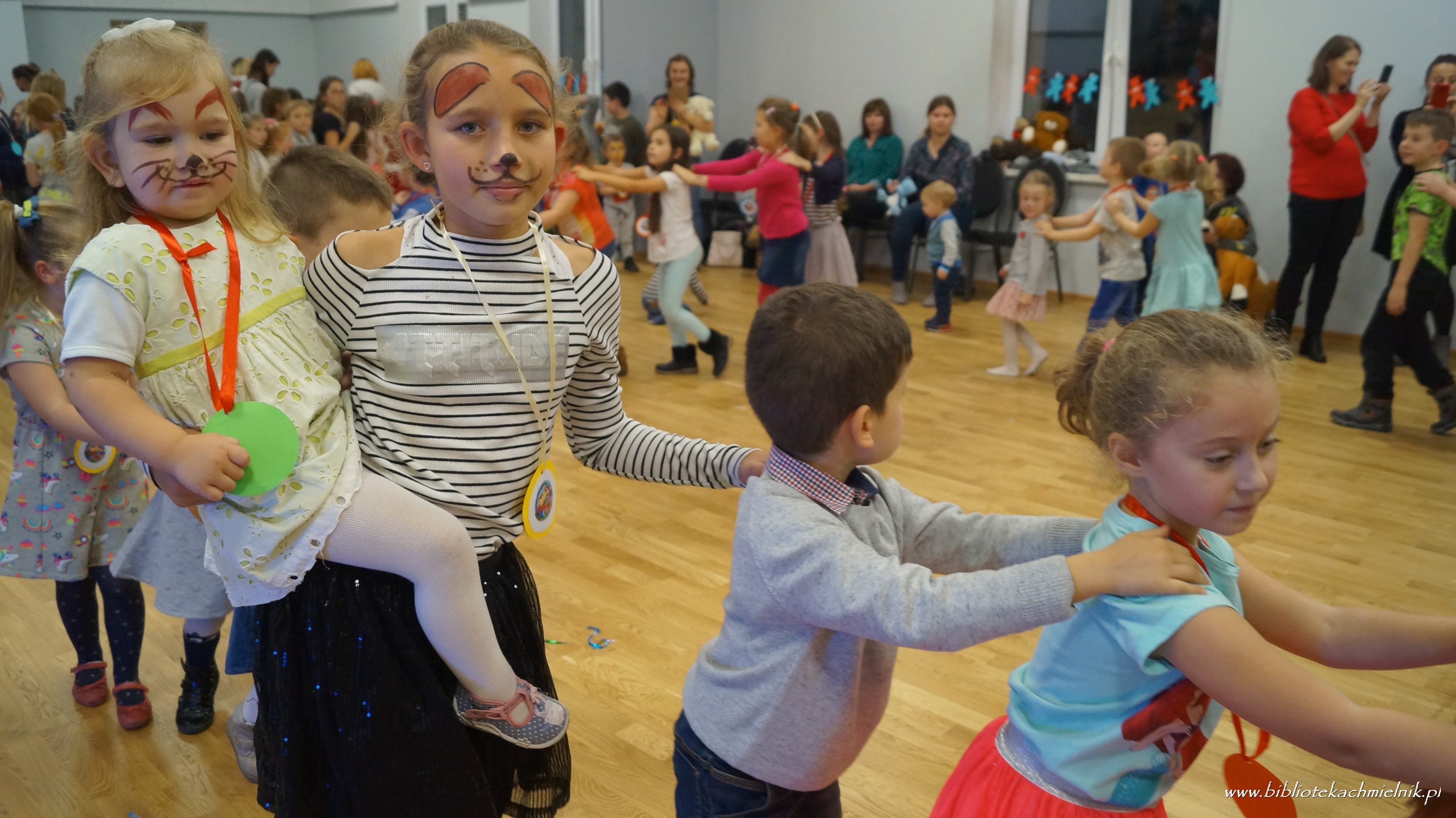 Miś, najukochańsza zabawka dzieci jest z nami już 116 lat. Jej posiadanie jest niezwykle ważne dla rozwoju emocjonalnego, dlatego Maluchy są często zasypywane różnymi maskotkami, ale tylko jedna z nich w efekcie staje się tą najważniejszą. Dzieci w ten sposób zyskują poczucie bezpieczeństwa i w tym małym pluszowym misiu mają wiernego przyjaciela, powiernika, towarzysza dziecięcych zabaw, przytulankę. Misie są zabierane na spacery, na obiadek, do lekarza i do łóżeczka. Czasami to miś pierwszy dowiaduje się o wszystkim co dla dziecka ważne, a nawet ociera łzy. O tym jak bardzo dzieci lubią misie świadczyła frekwencja na "Balu u Misia", który został w tym roku zorganizowany w Chmielniku przez bibliotekarki-animatorki. Misiowe urodziny świętowało z nami 164 dzieci, ale tę liczbę trzeba podwoić, bo każde dziecko przyniosło ze sobą ukochanego misia. Wstępem do zabawy było przedstawienie teatralne "Bajowe przygody mojego misia" w wykonaniu grupy Edu-Artis. Na widowni zasiedli mali widzowie i ich pluszowi przyjaciele. Po zakończonym spektaklu każdy miał ochotę na wspólne zdjęcie z misiem-aktorem. Nie wszystkim się to udało, ale wszyscy mogli być na jednej grupowej fotografii. Po takim wstępie dzieci były gotowe na prawdziwy, taneczny bal. Tańcom i radości nie było końca, czasami trudno było dotrzymać kroku najlepszym balowym tancerzom, ale bardzo liczna grupa świetnie bawiła się na parkiecie uczestnicząc w zabawach animacyjnych, konkursach i tanecznej integracji. W przerwie między jednym, a drugim maratonem tanecznym, odbyło się bardzo wyczekiwane przez dzieci wręczenie nagród w konkursie plastycznym. Konkurs na "Portret Misia" zgromadził 174 prace, wykonane z dużą pomysłowości i różnymi technikami. Komisja konkursowa miała bardzo trudne zadanie i ostatecznie wybrała 60 laureatów. Nagrody książkowe trafiły do 46 uczestników konkursu, natomiast zestawy upominkowe do 14. Na "Balu u Misia" nie mogło zabraknąć "małego co nieco" i oczywiście miodku, misiowego przysmaku, który tym razem był dodatkiem do herbaty. Dodatkową atrakcją dla dzieci było malowanie buziek, w które przez cały czas trwania zabawy tanecznej zaangażowani byli członkowie nieformalnej grupy Strefa Kultury Młodzieżowej. Młodzi tancerze i ich misie zmęczeni, ale radośni odtańczyli ostatni taniec i razem ze swoimi pluszowymi przyjaciółmi wrócili do domów. Kolejne urodziny misia już za rok, ale może to nie będą jedyne taneczne harce jakie mamy w zanadrzu dla najmłodszych. Bądźcie czujni!