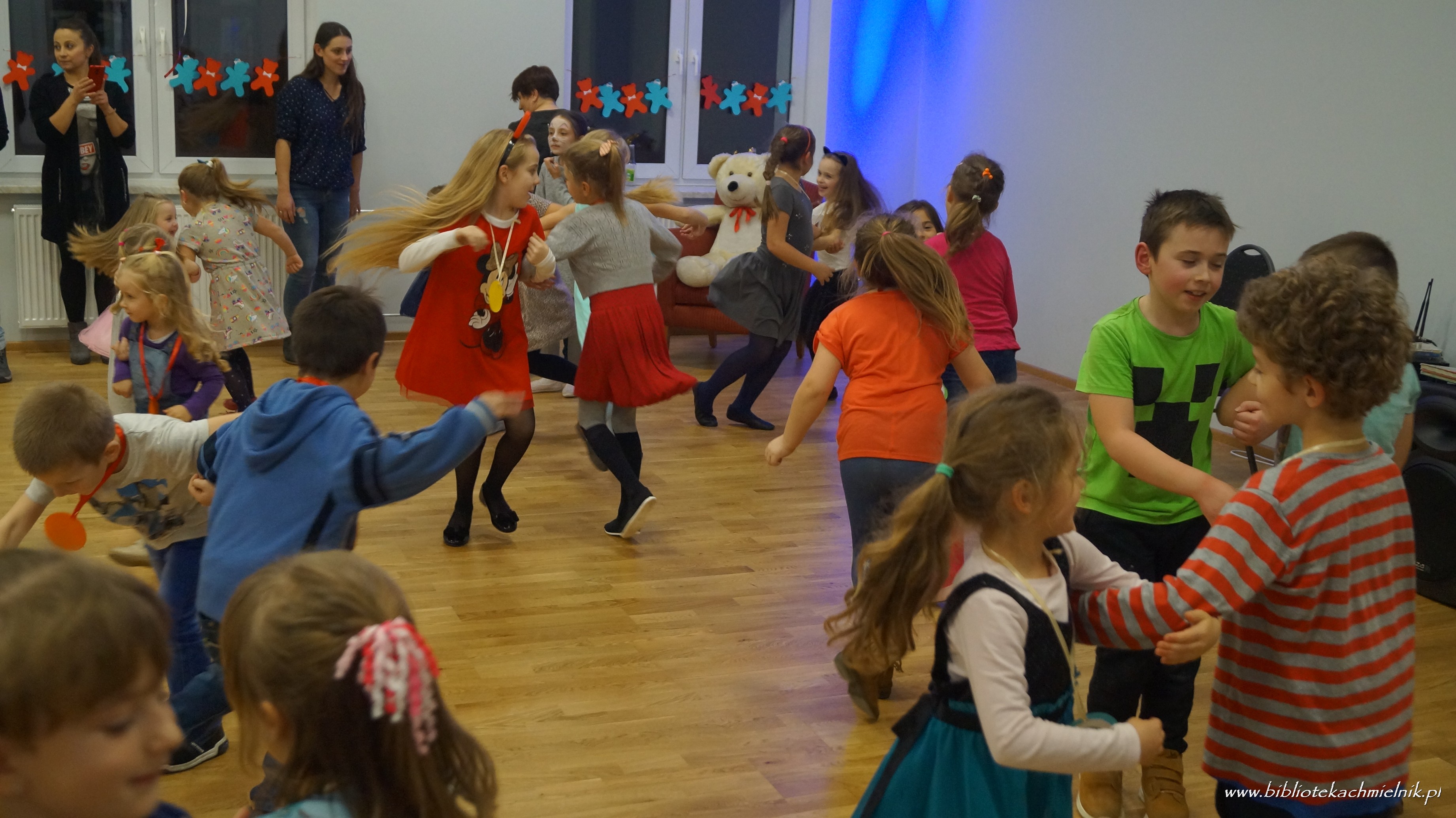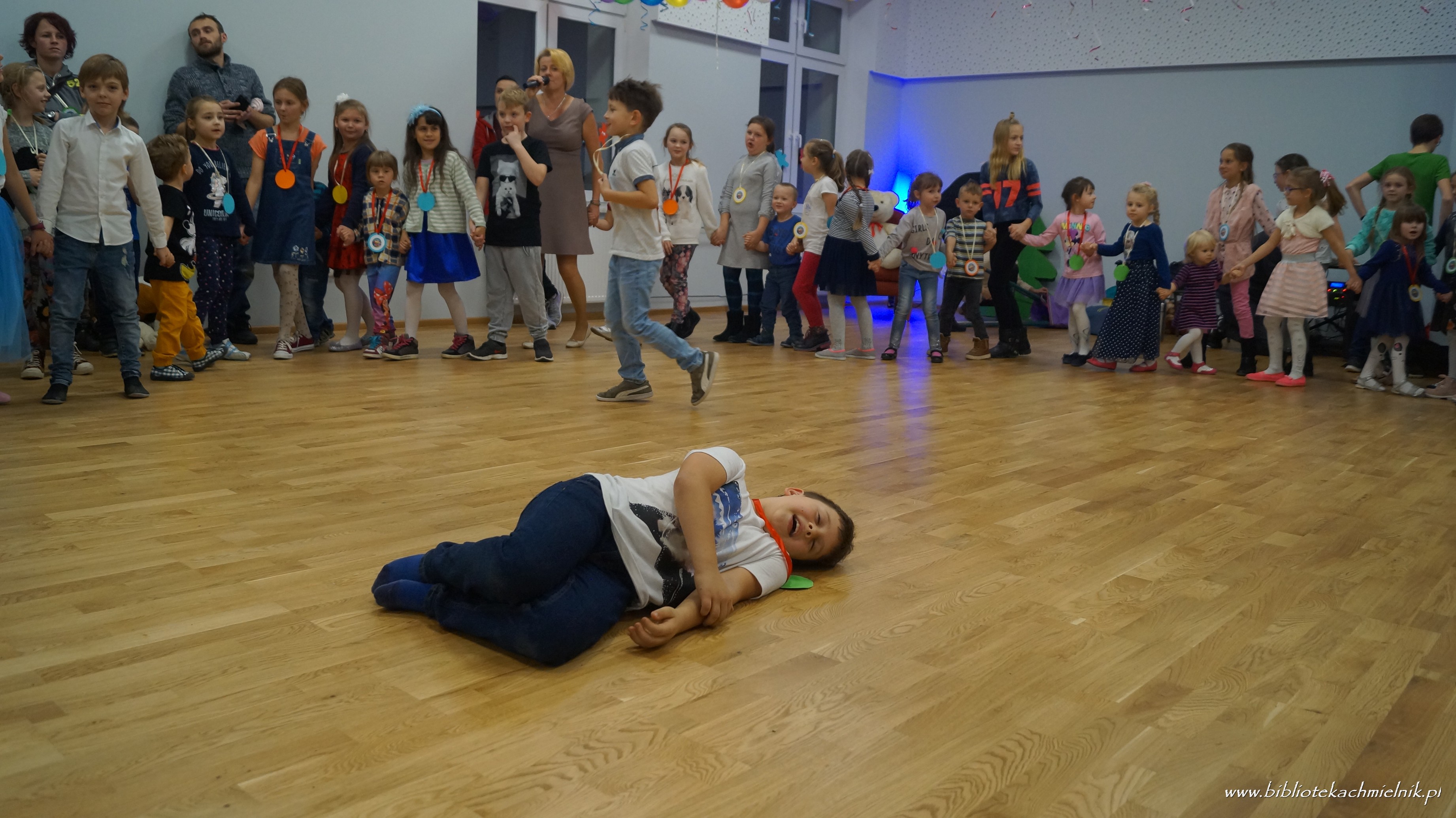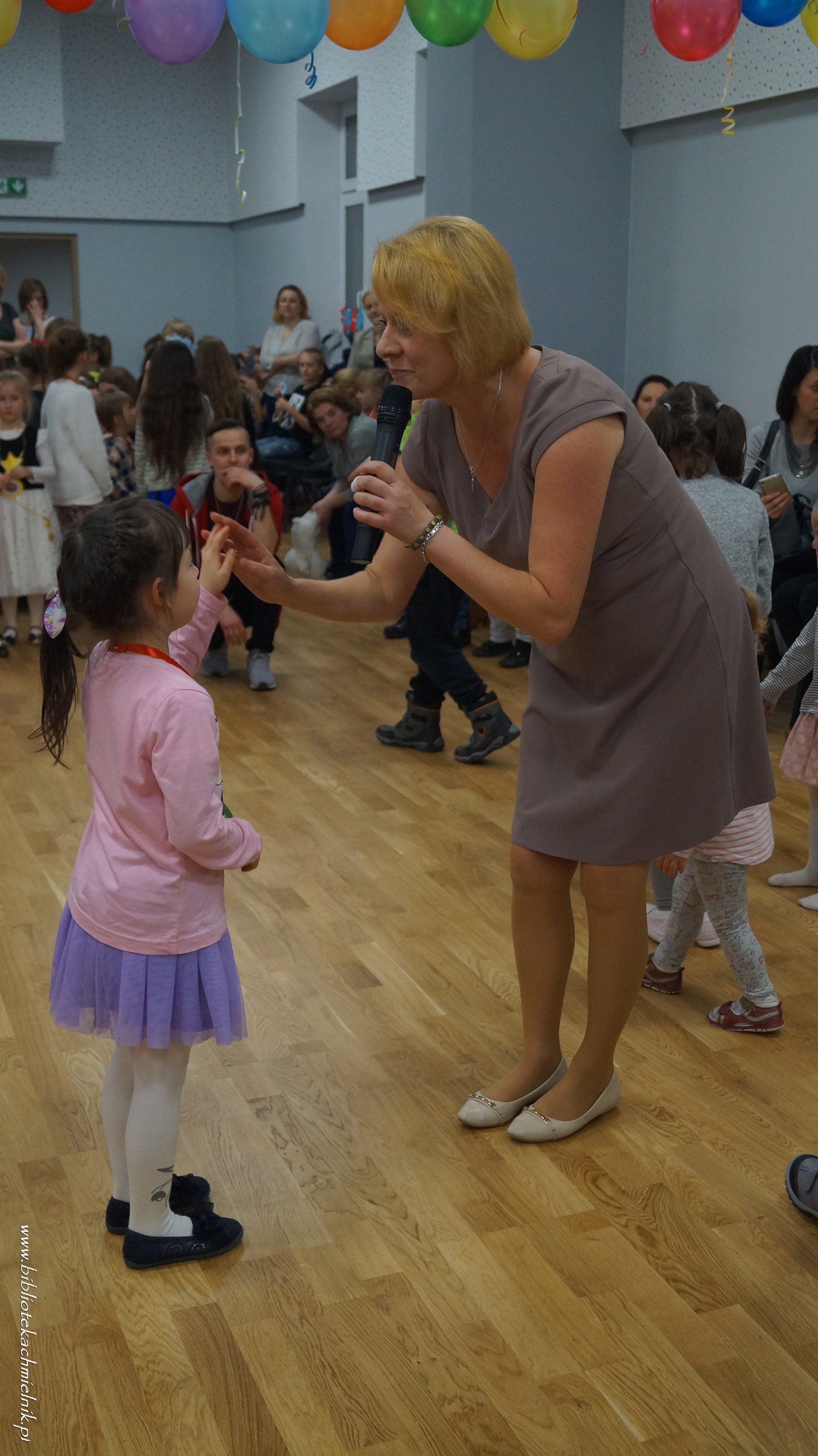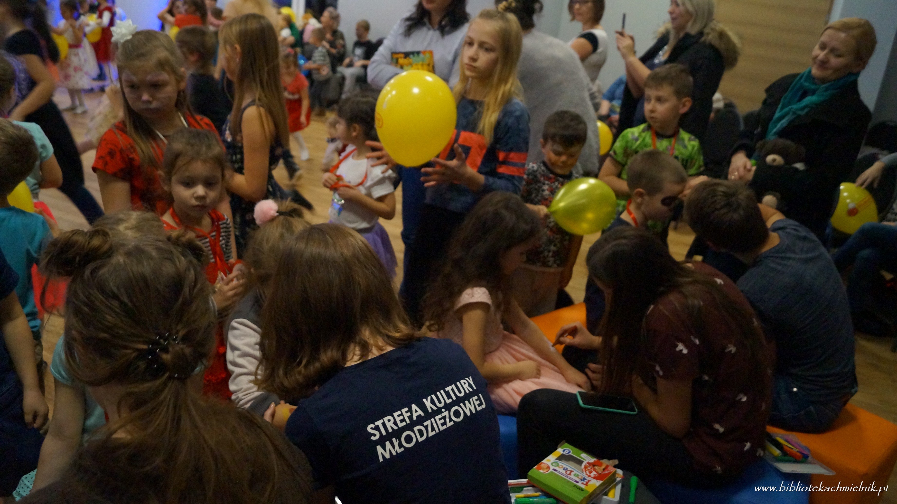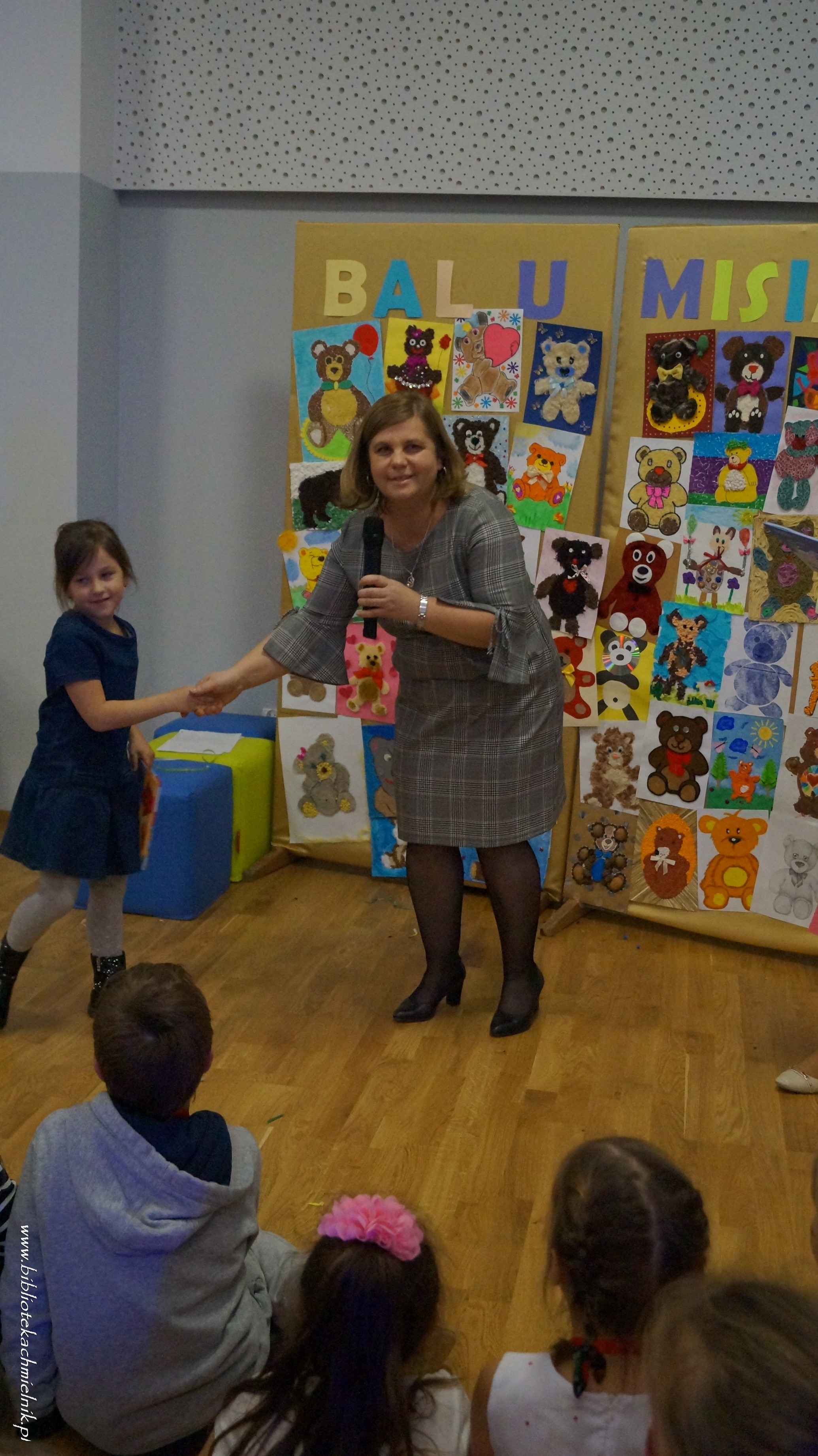 Miś, najukochańsza zabawka dzieci jest z nami już 116 lat. Jej posiadanie jest niezwykle ważne dla rozwoju emocjonalnego, dlatego Maluchy są często zasypywane różnymi maskotkami, ale tylko jedna z nich w efekcie staje się tą najważniejszą. Dzieci w ten sposób zyskują poczucie bezpieczeństwa i w tym małym pluszowym misiu mają wiernego przyjaciela, powiernika, towarzysza dziecięcych zabaw, przytulankę. Misie są zabierane na spacery, na obiadek, do lekarza i do łóżeczka. Czasami to miś pierwszy dowiaduje się o wszystkim co dla dziecka ważne, a nawet ociera łzy. O tym jak bardzo dzieci lubią misie świadczyła frekwencja na "Balu u Misia", który został w tym roku zorganizowany w Chmielniku przez bibliotekarki-animatorki. Misiowe urodziny świętowało z nami 164 dzieci, ale tę liczbę trzeba podwoić, bo każde dziecko przyniosło ze sobą ukochanego misia. Wstępem do zabawy było przedstawienie teatralne "Bajowe przygody mojego misia" w wykonaniu grupy Edu-Artis. Na widowni zasiedli mali widzowie i ich pluszowi przyjaciele. Po zakończonym spektaklu każdy miał ochotę na wspólne zdjęcie z misiem-aktorem. Nie wszystkim się to udało, ale wszyscy mogli być na jednej grupowej fotografii. Po takim wstępie dzieci były gotowe na prawdziwy, taneczny bal. Tańcom i radości nie było końca, czasami trudno było dotrzymać kroku najlepszym balowym tancerzom, ale bardzo liczna grupa świetnie bawiła się na parkiecie uczestnicząc w zabawach animacyjnych, konkursach i tanecznej integracji. W przerwie między jednym, a drugim maratonem tanecznym, odbyło się bardzo wyczekiwane przez dzieci wręczenie nagród w konkursie plastycznym. Konkurs na "Portret Misia" zgromadził 174 prace, wykonane z dużą pomysłowości i różnymi technikami. Komisja konkursowa miała bardzo trudne zadanie i ostatecznie wybrała 60 laureatów. Nagrody książkowe trafiły do 46 uczestników konkursu, natomiast zestawy upominkowe do 14. Na "Balu u Misia" nie mogło zabraknąć "małego co nieco" i oczywiście miodku, misiowego przysmaku, który tym razem był dodatkiem do herbaty. Dodatkową atrakcją dla dzieci było malowanie buziek, w które przez cały czas trwania zabawy tanecznej zaangażowani byli członkowie nieformalnej grupy Strefa Kultury Młodzieżowej. Młodzi tancerze i ich misie zmęczeni, ale radośni odtańczyli ostatni taniec i razem ze swoimi pluszowymi przyjaciółmi wrócili do domów. Kolejne urodziny misia już za rok, ale może to nie będą jedyne taneczne harce jakie mamy w zanadrzu dla najmłodszych. Bądźcie czujni!
