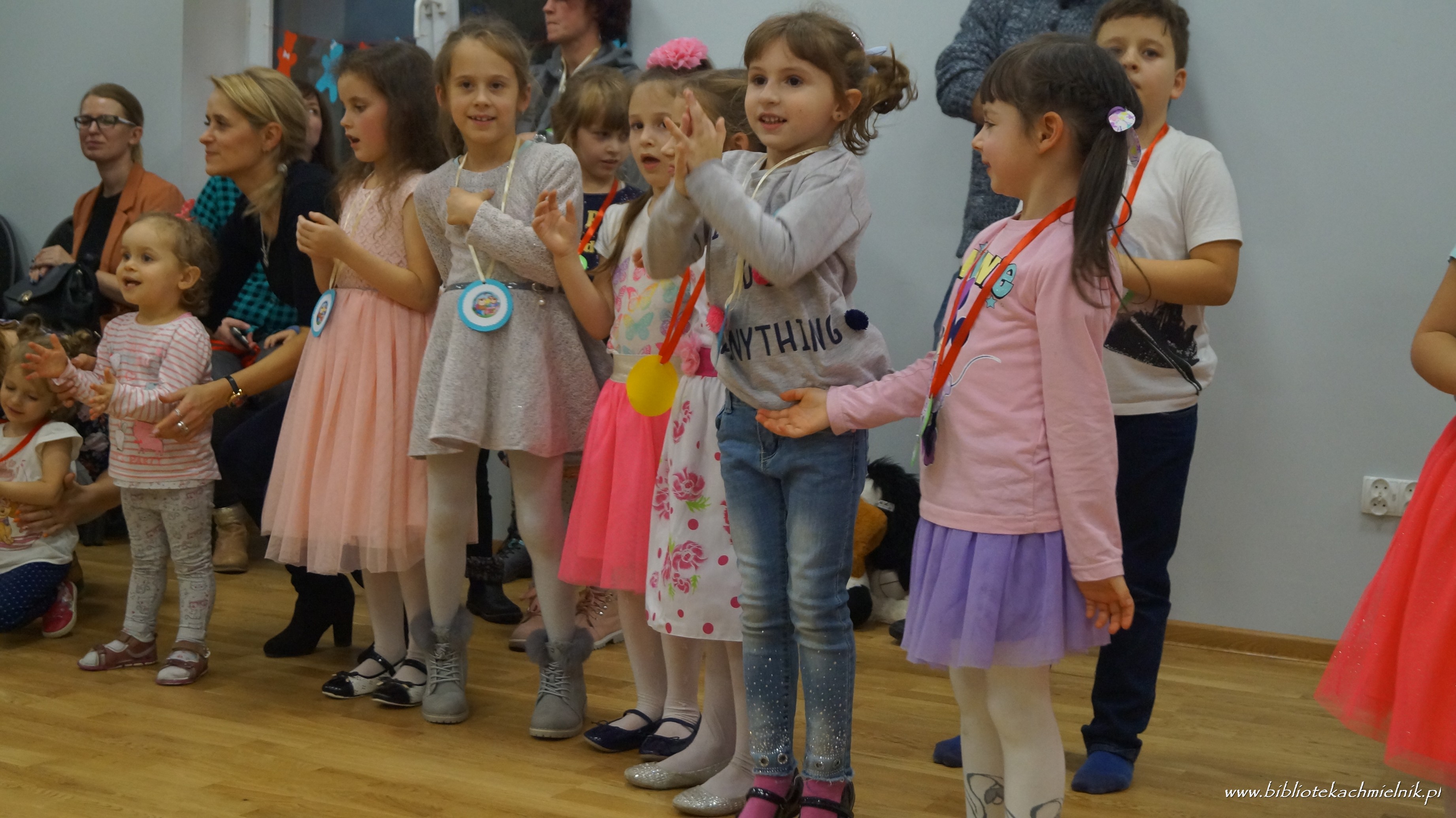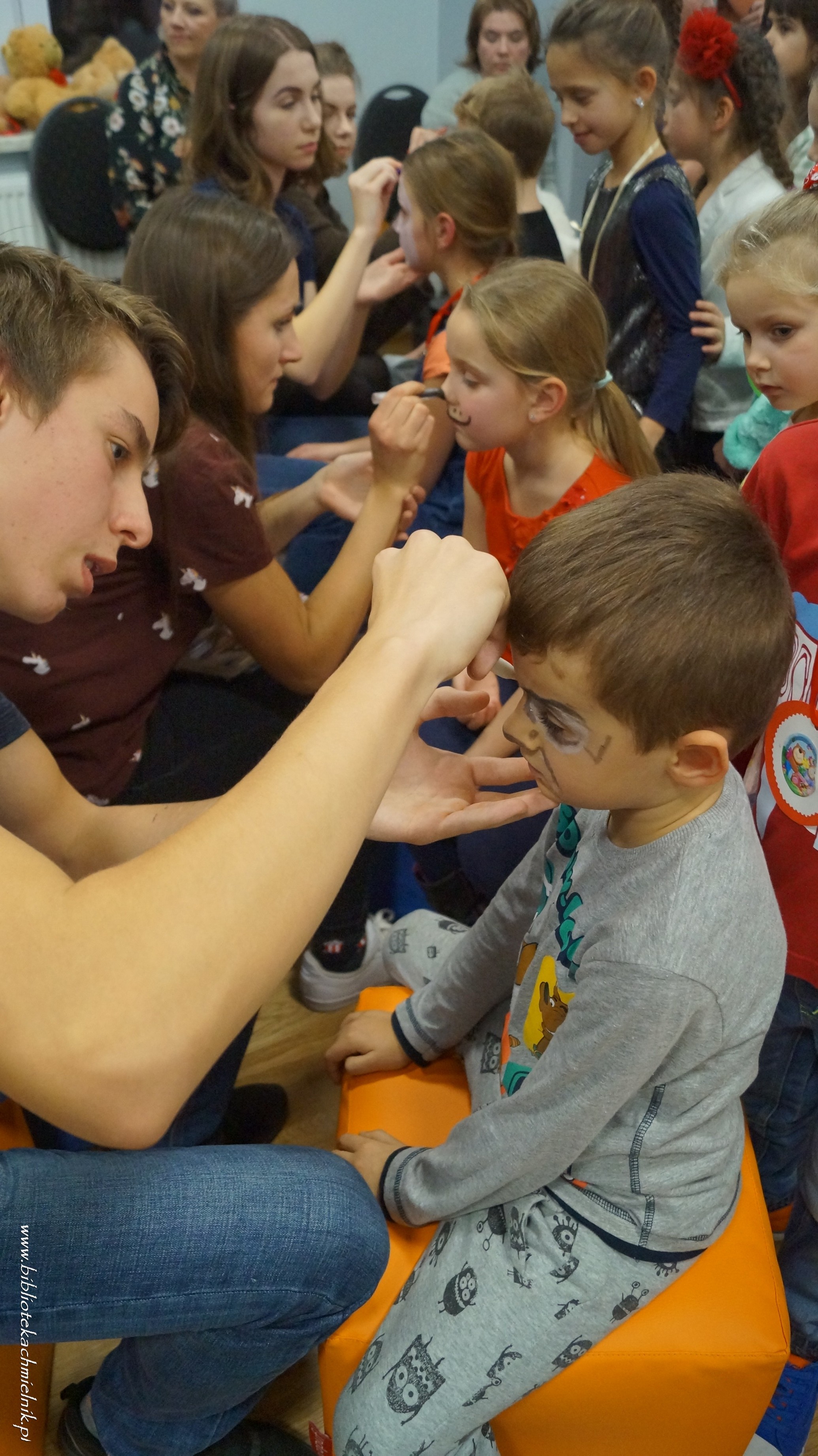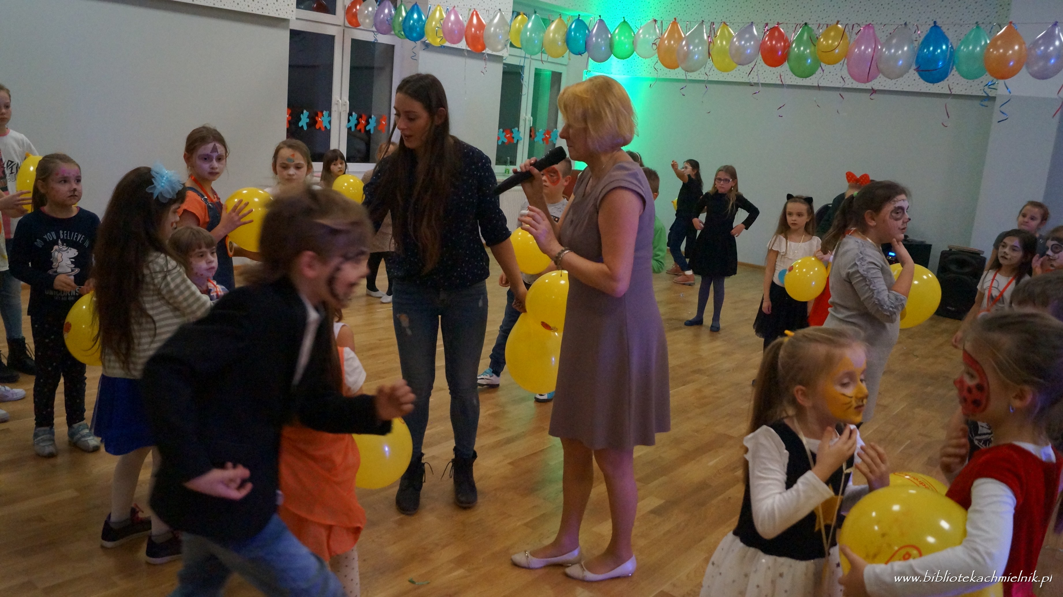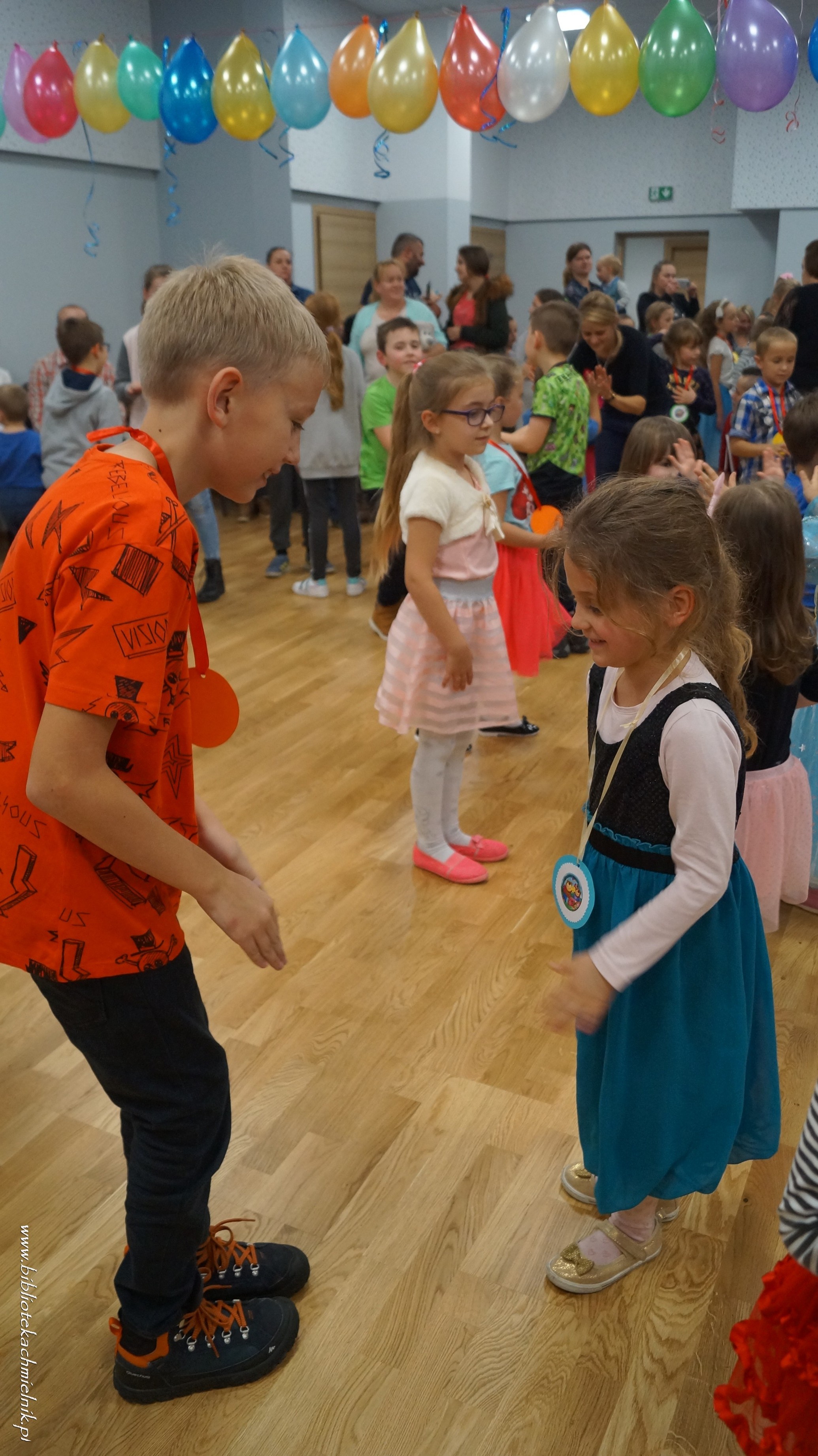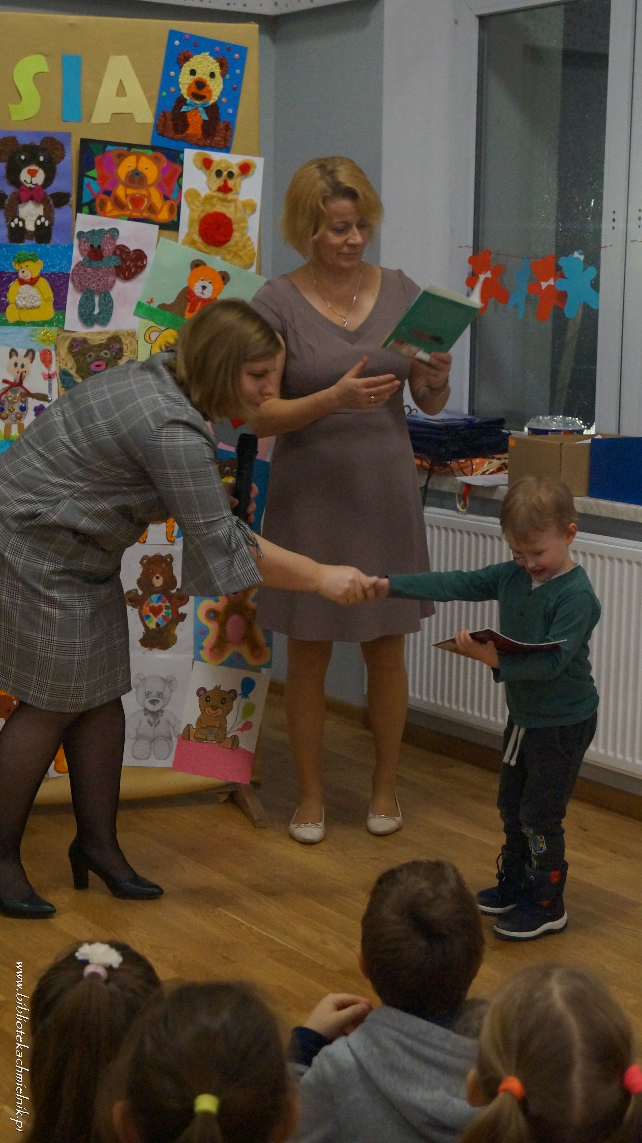 Miś, najukochańsza zabawka dzieci jest z nami już 116 lat. Jej posiadanie jest niezwykle ważne dla rozwoju emocjonalnego, dlatego Maluchy są często zasypywane różnymi maskotkami, ale tylko jedna z nich w efekcie staje się tą najważniejszą. Dzieci w ten sposób zyskują poczucie bezpieczeństwa i w tym małym pluszowym misiu mają wiernego przyjaciela, powiernika, towarzysza dziecięcych zabaw, przytulankę. Misie są zabierane na spacery, na obiadek, do lekarza i do łóżeczka. Czasami to miś pierwszy dowiaduje się o wszystkim co dla dziecka ważne, a nawet ociera łzy. O tym jak bardzo dzieci lubią misie świadczyła frekwencja na "Balu u Misia", który został w tym roku zorganizowany w Chmielniku przez bibliotekarki-animatorki. Misiowe urodziny świętowało z nami 164 dzieci, ale tę liczbę trzeba podwoić, bo każde dziecko przyniosło ze sobą ukochanego misia. Wstępem do zabawy było przedstawienie teatralne "Bajowe przygody mojego misia" w wykonaniu grupy Edu-Artis. Na widowni zasiedli mali widzowie i ich pluszowi przyjaciele. Po zakończonym spektaklu każdy miał ochotę na wspólne zdjęcie z misiem-aktorem. Nie wszystkim się to udało, ale wszyscy mogli być na jednej grupowej fotografii. Po takim wstępie dzieci były gotowe na prawdziwy, taneczny bal. Tańcom i radości nie było końca, czasami trudno było dotrzymać kroku najlepszym balowym tancerzom, ale bardzo liczna grupa świetnie bawiła się na parkiecie uczestnicząc w zabawach animacyjnych, konkursach i tanecznej integracji. W przerwie między jednym, a drugim maratonem tanecznym, odbyło się bardzo wyczekiwane przez dzieci wręczenie nagród w konkursie plastycznym. Konkurs na "Portret Misia" zgromadził 174 prace, wykonane z dużą pomysłowości i różnymi technikami. Komisja konkursowa miała bardzo trudne zadanie i ostatecznie wybrała 60 laureatów. Nagrody książkowe trafiły do 46 uczestników konkursu, natomiast zestawy upominkowe do 14. Na "Balu u Misia" nie mogło zabraknąć "małego co nieco" i oczywiście miodku, misiowego przysmaku, który tym razem był dodatkiem do herbaty. Dodatkową atrakcją dla dzieci było malowanie buziek, w które przez cały czas trwania zabawy tanecznej zaangażowani byli członkowie nieformalnej grupy Strefa Kultury Młodzieżowej. Młodzi tancerze i ich misie zmęczeni, ale radośni odtańczyli ostatni taniec i razem ze swoimi pluszowymi przyjaciółmi wrócili do domów. Kolejne urodziny misia już za rok, ale może to nie będą jedyne taneczne harce jakie mamy w zanadrzu dla najmłodszych. Bądźcie czujni!