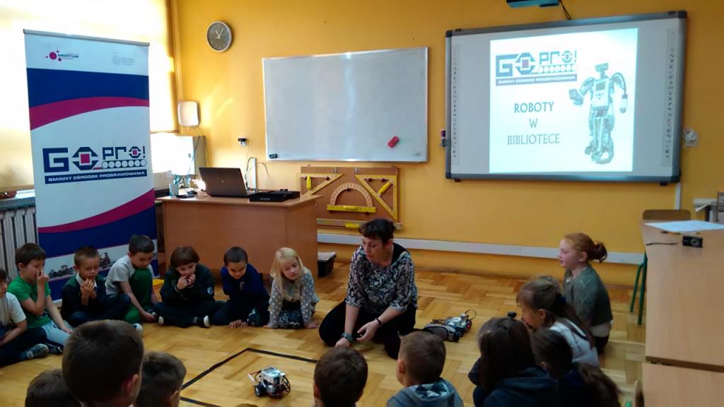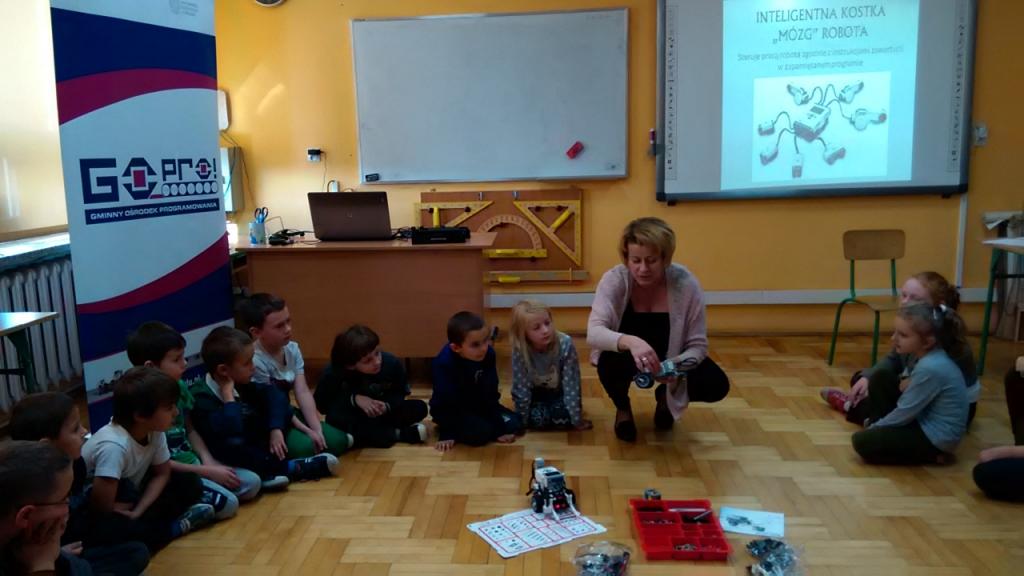 Pracownia, w której będzie można konstruować i programować roboty wystartowała. Aby zachęcić dzieci do skorzystania z oferty jaką daje projekt GO-PRO Gminny Ośrodek Programowania, rozpoczęliśmy od pokazu dla uczniów klas I-VI korzystając z gościnności Szkoły Podstawowej im. Orląt Lwowskich w Zabratówce. Uczestniczyła w nim 49- osobowa grupa. Pokazowi towarzyszyła prezentacja multimedialna, która wyjaśniała podstawowe pojęcia związane z budową robotów i była pretekstem do dyskusji z dziećmi o tym dlaczego warto się tym zajmować. Zademonstrowane zostały możliwości robotów, które powstały z klocków Lego i zaprogramowane dzięki inteligentnej kostce i odpowiedniemu programowi. Dzieci obejrzały także dzięki aplikacji na urządzenie mobilne otrzymane w projekcie, jak powstaje robot w 3D. Aplikacja daje możliwość śledzenia krok po kroku układu pojedynczych elementów, łączenia klocków we właściwej kolejności i w odpowiednich miejscach. Pokaz zaowocował pierwszymi chętnymi na zajęcia, które na początek ruszają w bibliotece w Zabratówce. W Chmielniku już niebawem odbędzie się pokaz i ustalenie dni, w których poprzez zabawę dzieci będą mogły nabywać nowe umiejętności i pobudzać logiczne myślenie.