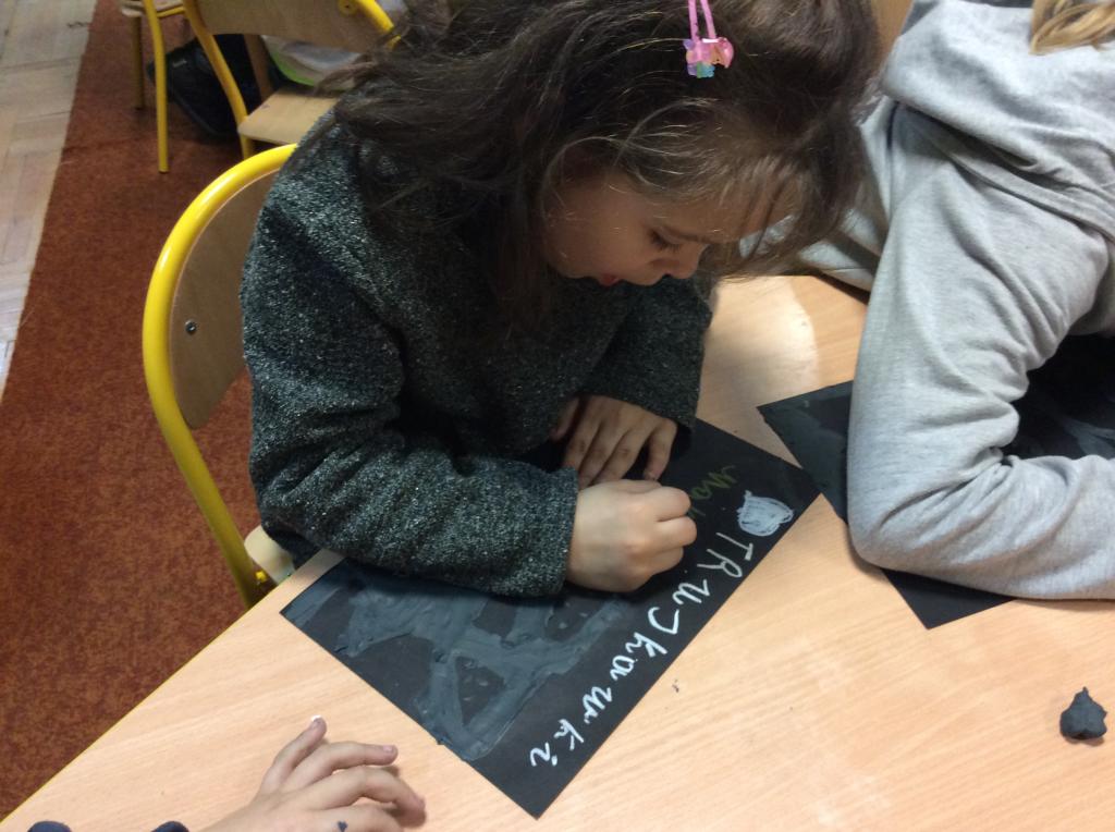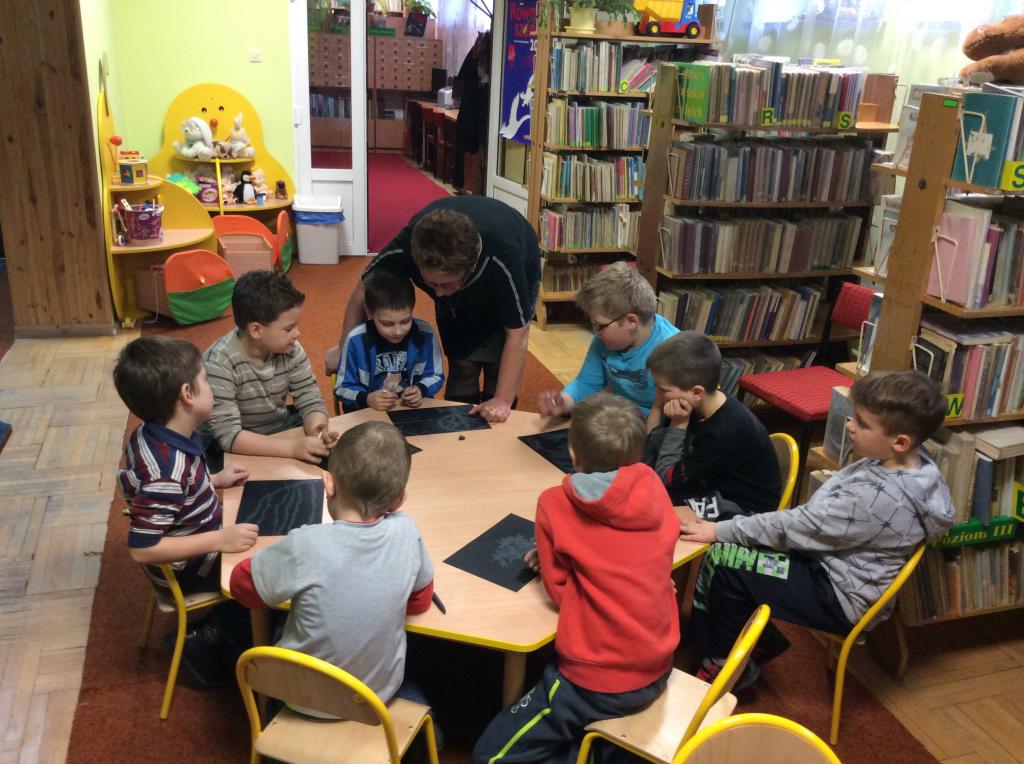 Konfucjańska maksyma ma zastosowanie również w bibliotece. Uczniowie klasy I razem z p. Alicją Leśniak poznawali "Czarną książkę kolorów" Menneny Cottin i Rosany Farii. Celem zajęć było obudzenie w najmłodszych empatii i zrozumienia dla niepełnosprawności, ale też próba uświadomienia różnic, które nie muszą dzielić, a mogą wzajemnie wzbogacać nasze światy, ten kolorowy i ten w którym kolory funkcjonują inaczej. Kolory mają smak, zapach, kształt, ale o tym wiedzą tylko Ci, którzy ich nie widzą. Wprowadzeniem do zajęć było opowiadanie o niewidomej dziewczynce, która żyje tak jak oni i "widzi"jak oni, tylko używa innych zmysłów, by poznawać świat. Dzięki zajęciom praktycznym dzieci miały okazję namacalnie przekonać się jak kolory odbierają niewidomi. Z uwagą przeczytały i "obejrzały" wszystkimi zmysłami książkę, dotykiem rozpoznawały ukryte w pudełku przedmioty. Z wielką fantazją opowiadali również o swoich ulubionych kolorach, które mimo, że takie same to dla każdego mają inni kształt i smak. Była to też okazja aby dowiedzieć się nieco więcej o alfabecie dla niewidomych i porównać ten dla widzących z alfabetem Braiile'a. Podsumowaniem lekcji było stworzenie czarnej książki kolorów pierwszoklasistów, którą można czytać również palcami. Taka forma zajęć pobudziła wyobraźnię i sprawiła dzieciom dużo radości. W naszych bibliotekach na takich zajęciach jest również dużo klanzowego tańca, który pobudza do działania i wyzwala w uczesnikach pozytywne emocje. Dzięki muzyc nasze zajęcia są zawsze "uśmniechnięte".