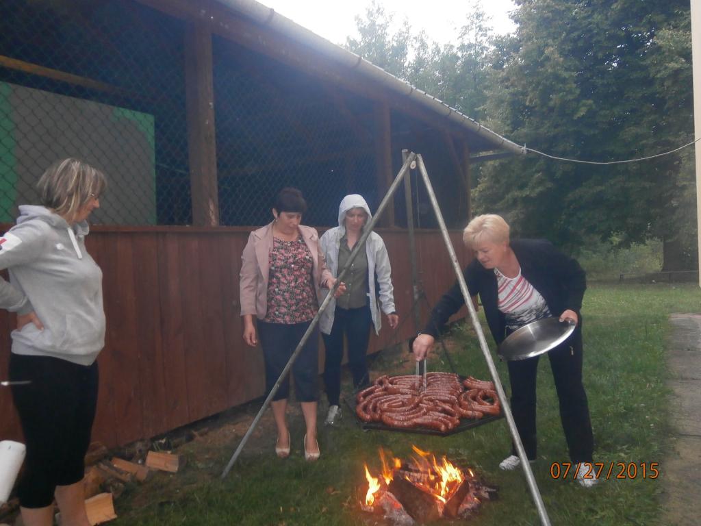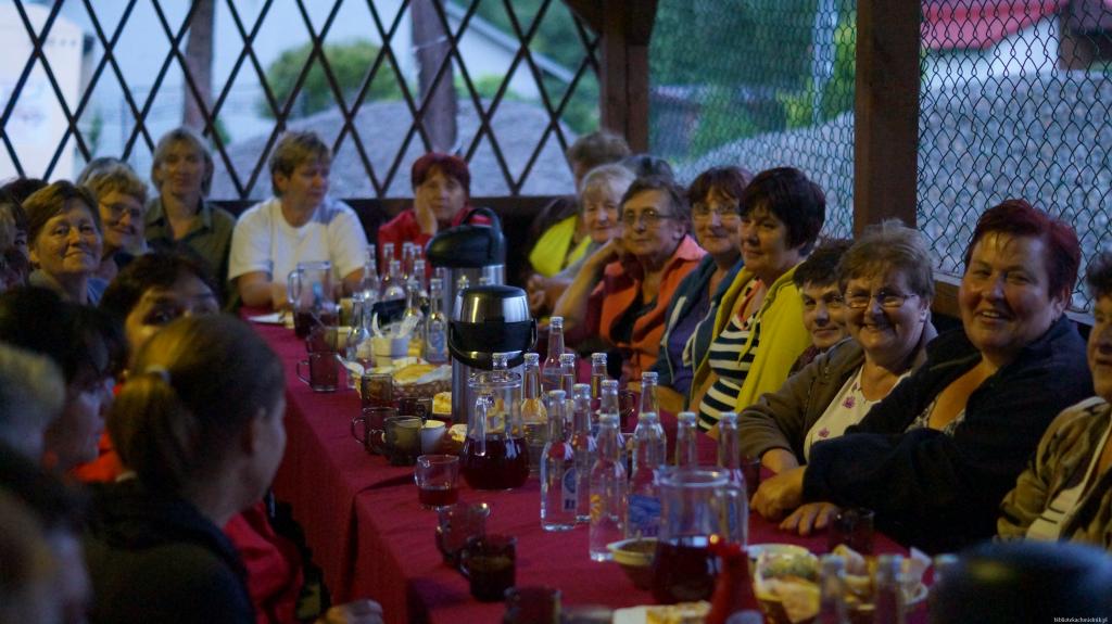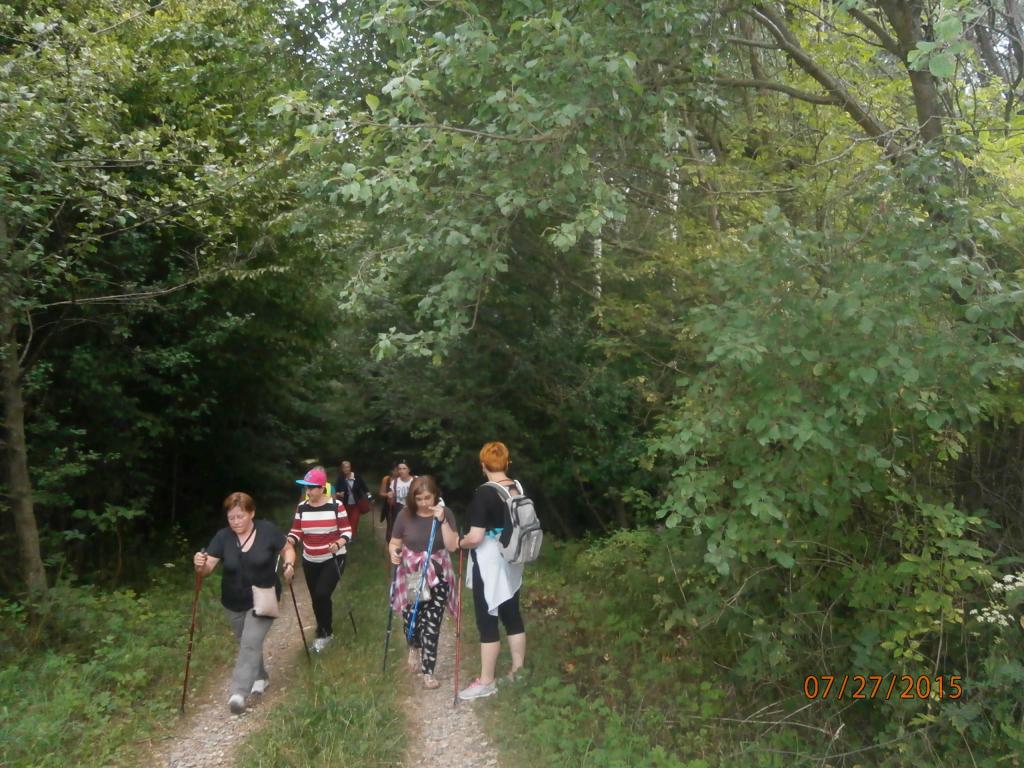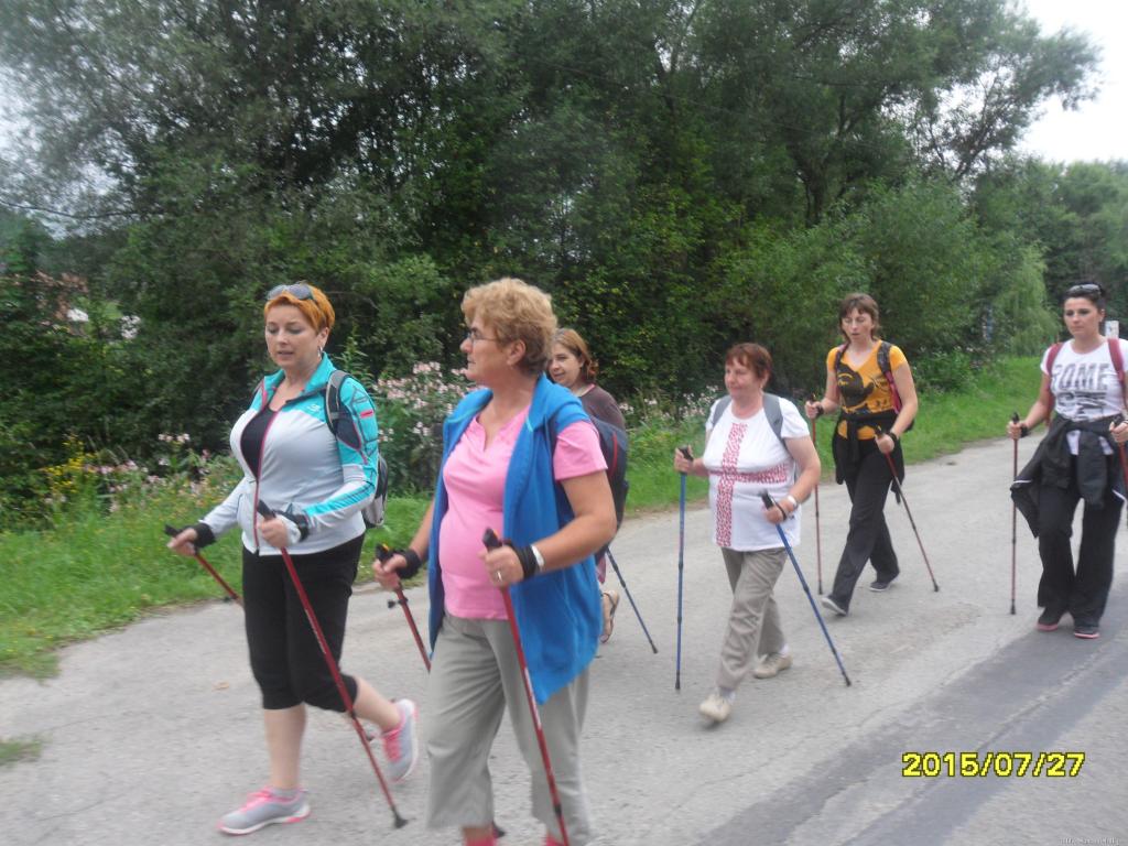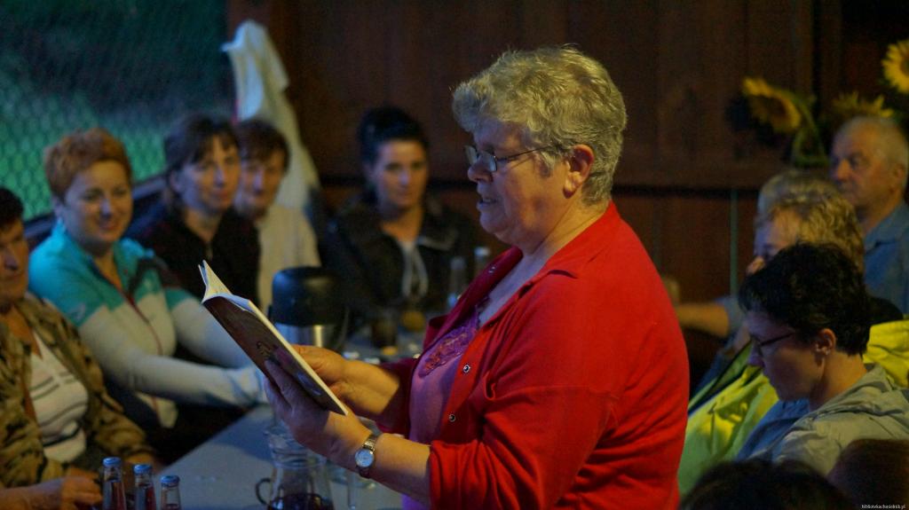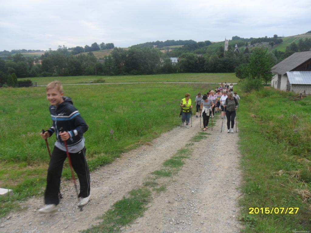 Po chmielnickich pagórkach przyszedł czas w projekcie z wykorzystaniem Nordic Walkig na odkrywanie uroków innych zakątków naszej gminy. Wybór padł na trasę, która wiodła z parkingu przy kościele parafialnym w Błędowej Tyczyńskiej do domu ludowego w Borówkach. Grupa projektowa stopniowo podnosi poprzeczkę dlatego i trasa była dłuższa i osób było więcej niż za pierwszym razem. Zachęcone przykładem i możliwością marszu w dużej grupie dołączyły do nas osoby bezpośrednio nie związane z projektem. Nie była to łatwa droga, bo pięła się coraz wyżej w górę, dodatkowym utrudnieniem był drobny letni deszczyk. Jednak w tak licznej gromadzie trudności nie są straszne. U mety czekały na uczestników panie, które ze względów zdrowotnych nie brały udziału w tym wymagającym kondycji marszu i przygotowały poczęstunek dla zdrożonych piechurów. Ale to nie wszystkie atrakcje z tego dnia. Zgodnie z założeniem projektu "Niewiele nam do zdrowia potrzeba trochę ruchu na świeżym powietrzu, poezji i chleba" był czas dla ucztę dla ducha, którą przygotowała pani Halina Borowska. Od lekkiej poezji, która sama tworzy poprzez żartobliwe strofy i utwory zebrane od mieszkańców gminy, doszła do wierszy polskich noblistów: Wisławy Szymborskiej i Czesława Miłosza angażując w odkrywanie piękna zawartego w poezji również inne uczestniczki projektu. Została w zmaganiach konkursowych sprawdzona wiedza uczestników dotycząca polskiej poezji. W nagrodę można było otrzymać tak bardzo niezbędną podczas uprawiania Nodic Walking kamizelkę odblaskową. Jak nakazuje tradycja spotkań w Kołach Gospodyń Wiejskich były również wspólne śpiewy i przypominanie starodawnych przyśpiewek młodszym osobom, które dołączyły do tegoż projektu w tym dniu. Dopełnieniem tej relacji są zamieszczone poniżej zdjęcia. Mamy nadzieję, że to zachęci do aktywności osoby wciąż wahające się czy marsz z kijkami to jest sport dla nich.