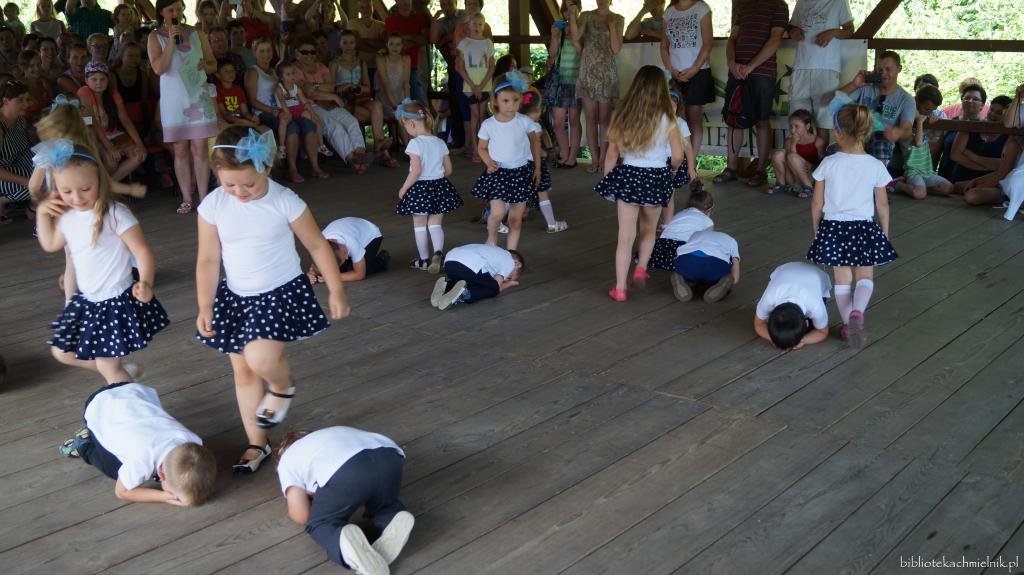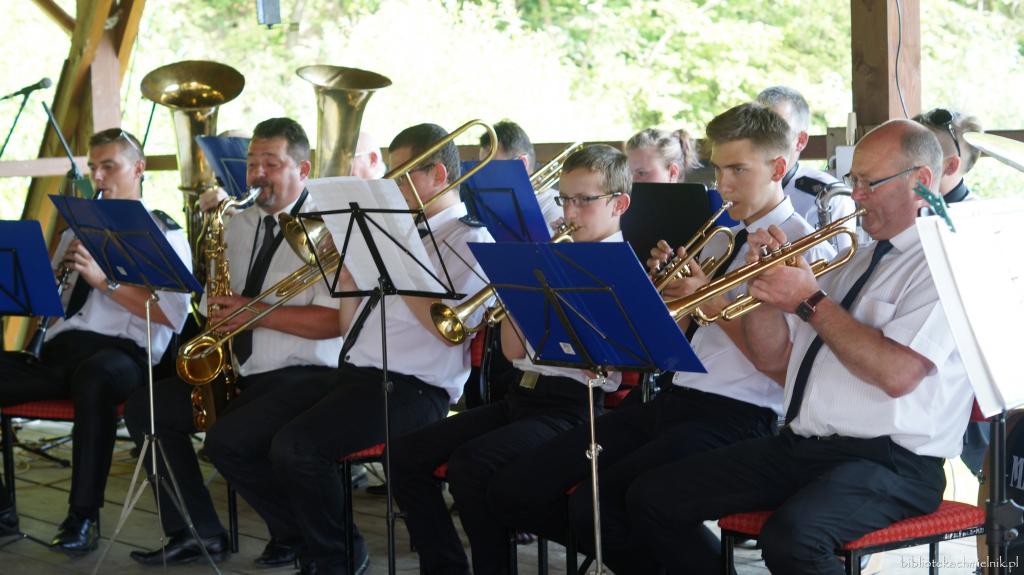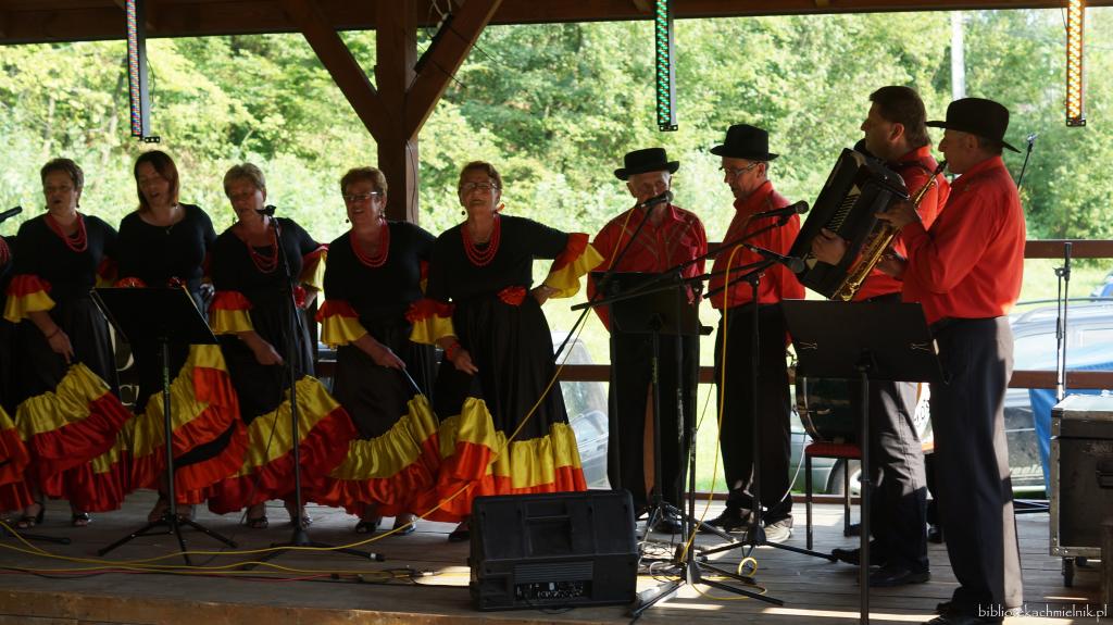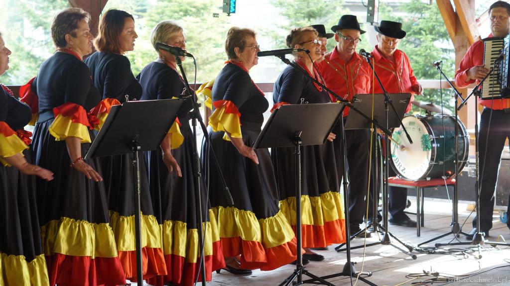 Tegoroczne piękne lato, obficie darzyło nas słońcem i sprawiło, że lokalne wydarzenia w plenerze cieszyły się dużą frekwencją. Jednym z nich było Święto Gminy Chmielnik. W tym roku przypadł mały jubileusz tego wydarzenia, bowiem zostało ono zainaugurowane przez Wójta Gminy Chmielnik 10 lat temu. Dlatego rozpoczęliśmy jego obchody mocnym brzmieniem, brzmieniem Orkiestry Dętej Ochotniczej Straży Pożarnej z Albigowej, w której można było usłyszeć również naszych rodzimych muzyków. Zgodnie z charakterem imprez plenerowych to co oferował program było podzielone na część artystyczną i to wszystko co działo się około sceny, a więc różnego typu atrakcje zlokalizowane w wielu punktach chmielnickiego stadionu. Wśród występujących byli przedstawiciele wszystkich pokoleń. Zaczęli najmłodsi z trzech oddziałów przedszkolnych ze Szkoły Podstawowej im. Św. M. M. Kolbego w Chmielniku. Koniczynki, Żabki i Delfinki debiutowały na lokalnej scenie śpiewając i tańcząc. Uczniowie szkoły muzycznej Pro Musica zaprezentowali się podczas występów wokalnych i instrumentalnych, a sekcja taneczna w widowiskowych pokazach. Taniec nowoczesny w choreografii Magdaleny Widłak można było obejrzeć w wykonaniu dzieci z grupy najmłodszej i młodzieży. Na scenie nie mogło zabraknąć oczywiście tańca ludowego, który zgromadzeni mogli obejrzeć w wykonaniu ZPiT Chmielnickie Kłosy. Zespół śpiewaczo-obrzędowy Brzozoki z Brzózy Królewskiej podczas gościnnego występu zaprezentował swój dorobek wokalny i aktorski. Ludowe utworu wykonały przedstawicielki Kół Gospodyń Wiejskich z terenu gminy zrzeszone w zespołach śpiewaczych Górzanie z Chmielnika i Pogórzanki z Zabratówki.