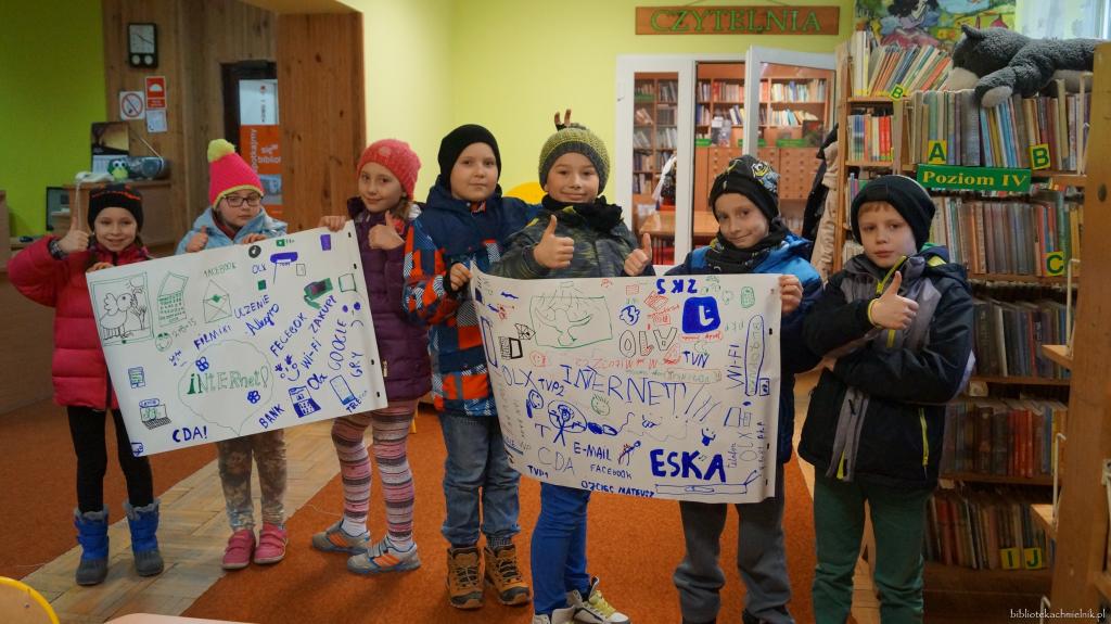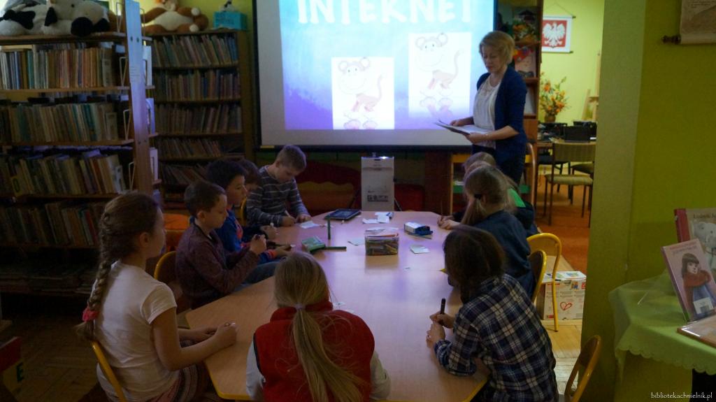 To główne pytania, na które poszukiwaliśmy odpowiedzi podczas zajęć pt: "Skąd się wzięły małpy w Internecie" w oparciu o książkę pod tym samym tytułem autorstwa Artura Janickiego, z ilustracjami Przemka Surmy, wydana przez Widnokrąg. W dwugodzinnych zajęciach uczestniczyli uczniowie klasy III z opiekunką, panią Bożeną Pańczak ze Szkoły Podstawowej im. Jana Pawła II w Chmielniku. Jednocześnie były to pierwsze zajęcia w ramach kampanii TYDZIEŃ Z INTERNETEM, do której przyłączyła się nasza biblioteka.