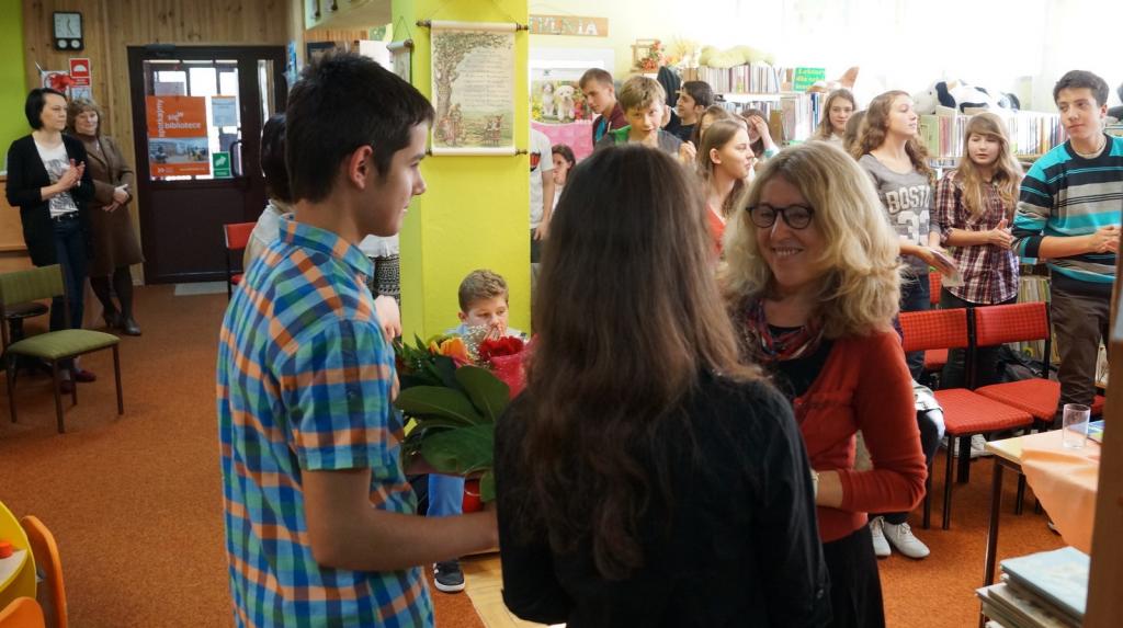 Lekkość z jaką przedstawiła w skrócie swoją historię i zaprezentowała książki pozwoliła nawiązać jej nic porozumienia z młodzieżą, która z zaciekawieniem słuchała, a później bez skrępowania zadawała wiele pytań. Pytań, które dotyczyły warsztatu pisarskiego, ale nie tylko, bo pojawiły się również takie zupełnie osobiste. Młodzi ludzie zadali znamienne pytanie: "CO CZYTAĆ?". I tu autorka zgodziła się z nimi, że w zalewie informacji, nastoletni czytelnicy mogą czuć się zagubieni i sięgać po niewłaściwe pozycje. Ponadto rynek książki młodzieżowej, która zaspokoiłaby oczekiwania młodych ludzi nie jest wcale duży. Uczestnictwo w takim spotkaniu zwróciło uwagę na to, że potrzebują oni przewodników w świecie literatury, a osobowość autorki sprawiła, że z odwagą o tym dyskutowali, wypowiadali swoje opinie i definiowali oczekiwania.