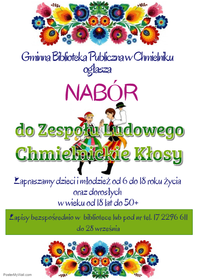 Kierownik Gminnej Biblioteki Publicznej w Chmielniku ogłasza nabór kandydatów na wolne stanowisko pracy animatora kultury w Domu ludowym w Chmielniku