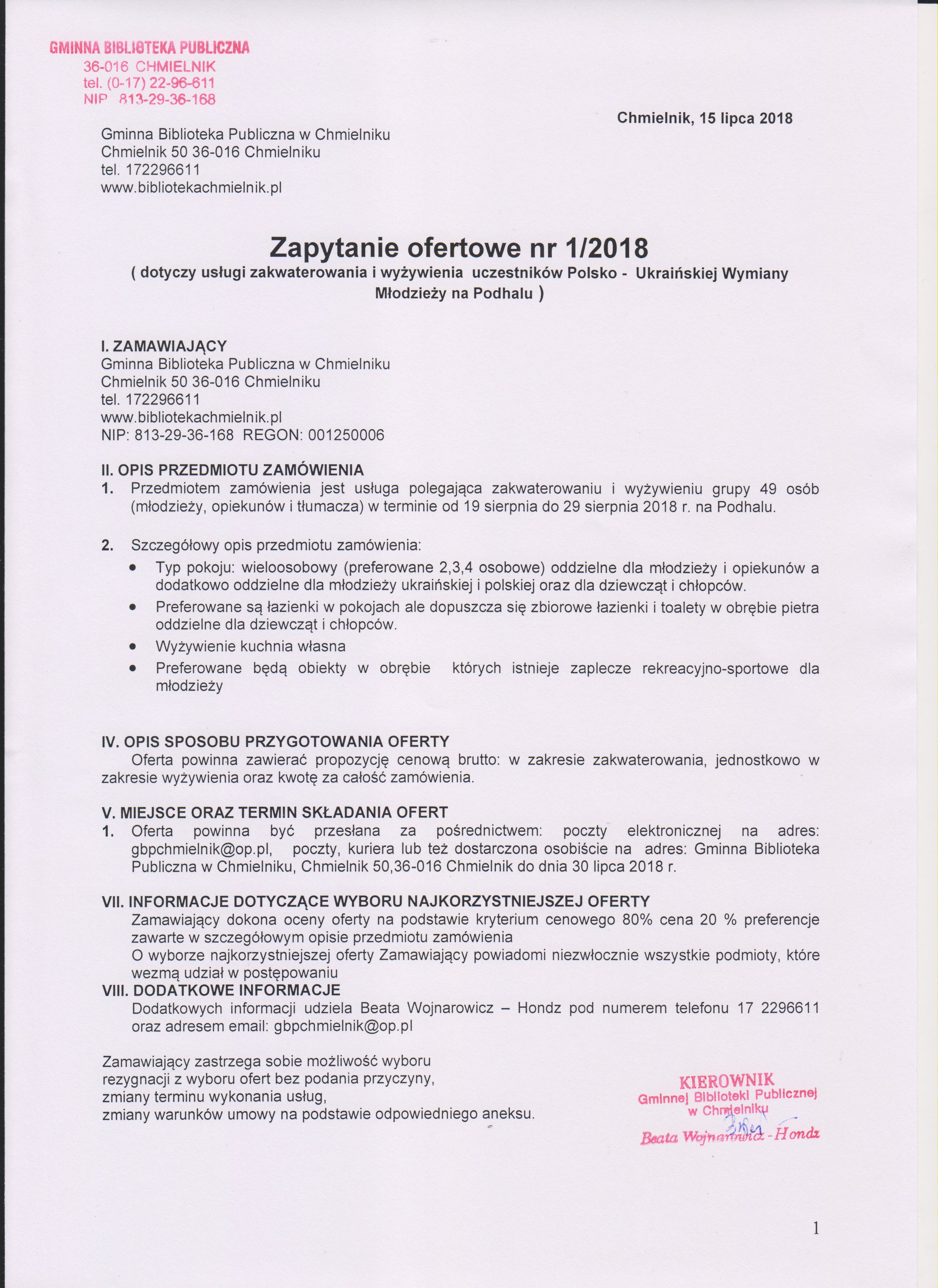 1. Administratorem Pani/Pana danych osobowych jest Gminna Biblioteka Publiczna w Chmielniku z siedzib...