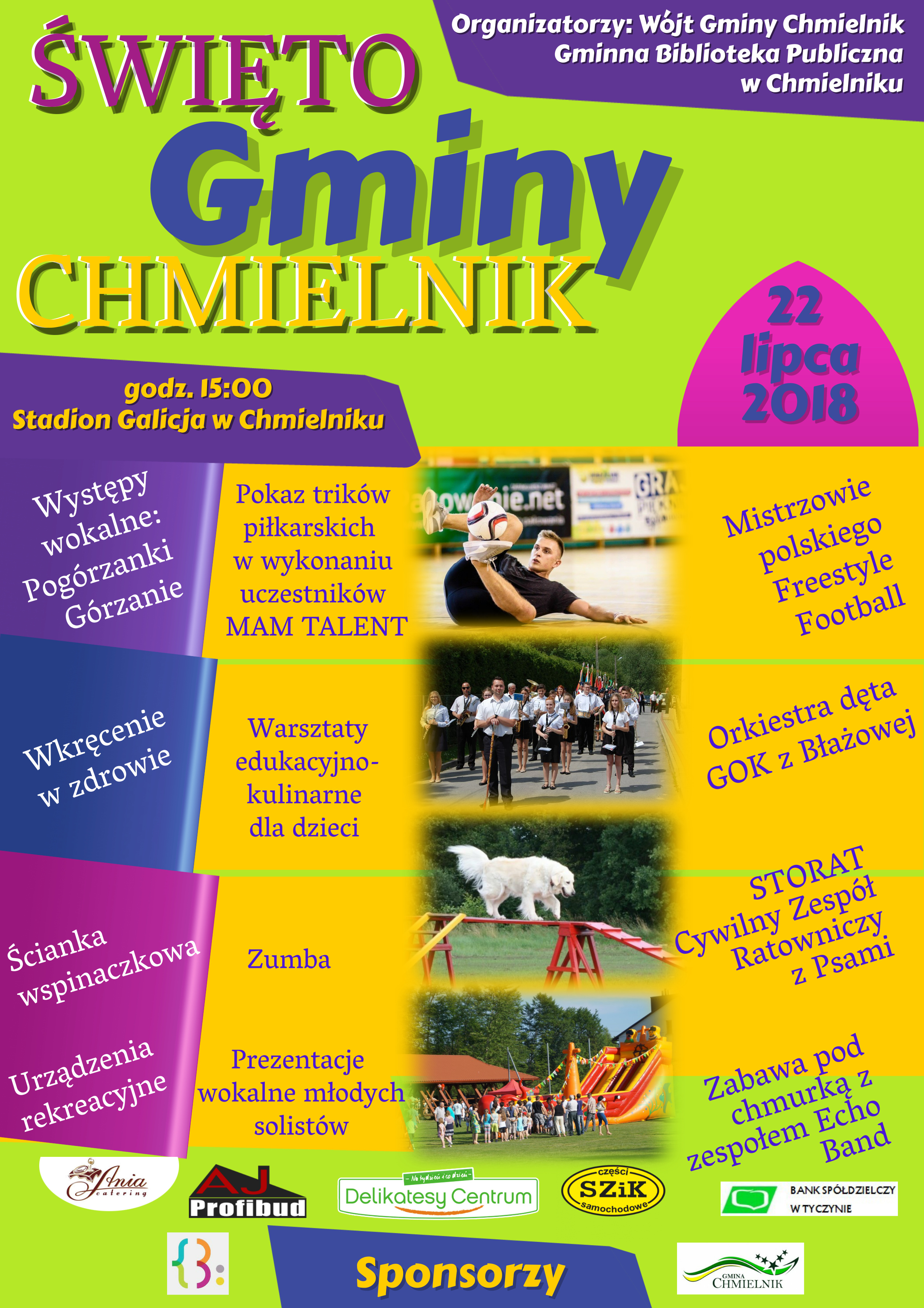 Święto Gminy Chmielnik 2018 mamy już za sobą, mamy też te ulotne chwile zatrzymane w kadrze. Gościliśmy w tym roku Orkiestrę Dętą z GOK-u w Błażowej, założycieli Stowarzyszenia Storat wraz ich czworonożnymi podopiecznymi, duet freestylowy BallWizards, pomysłodawczynię projektu Wkręceni w zdrowie, osoby które należą ...