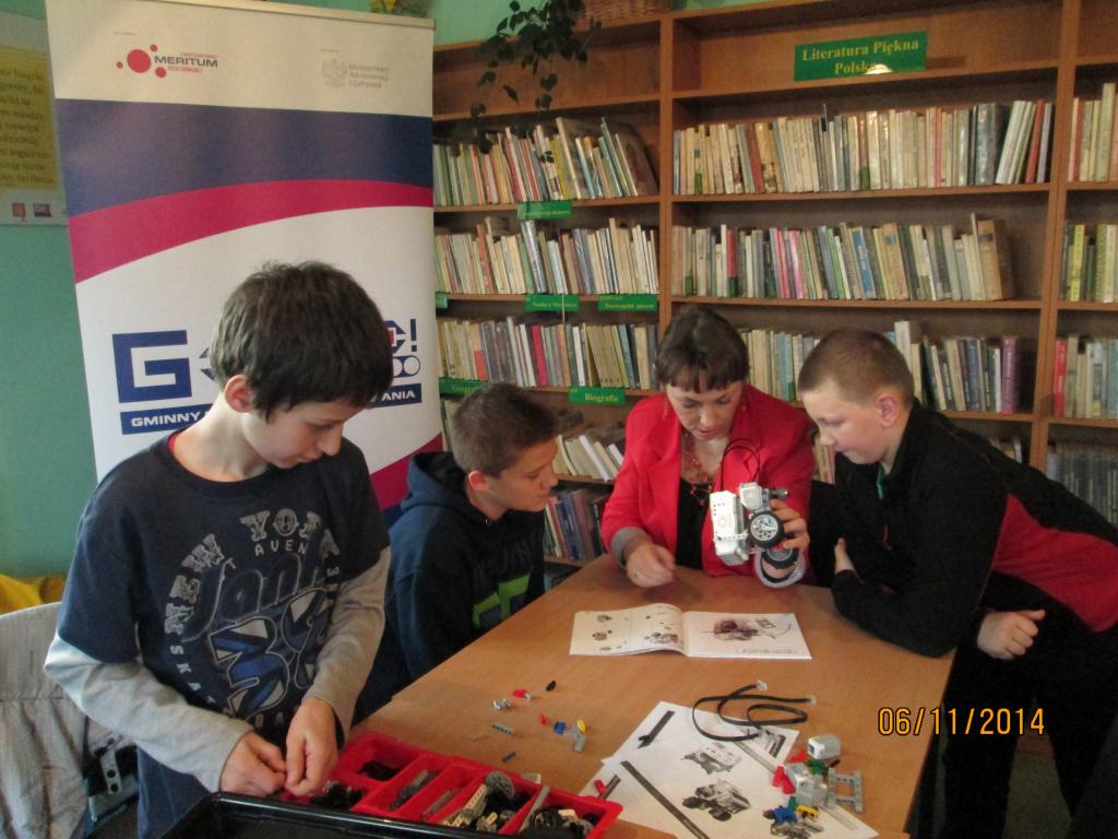 Po prezentacji w szkole zainteresowanie klockami LEGO i tym co można z nich zbudować wykazało bardzo dużo dzieci. Pierwsze zajęcia odbyły się w bibliotece w Zabratówce i zdominowali je chłopcy. Były to dwie grupy, z klasy V i VI. Każda grupa przypomniała sobie informacje zdobyte wcześniej, obejrzała wnikliwie klocki jakimi przyjdzie im dysponować i zabrała się ochoczo do pracy. Początkowo było trudno ustalić młodym konstruktorom podział ról ...