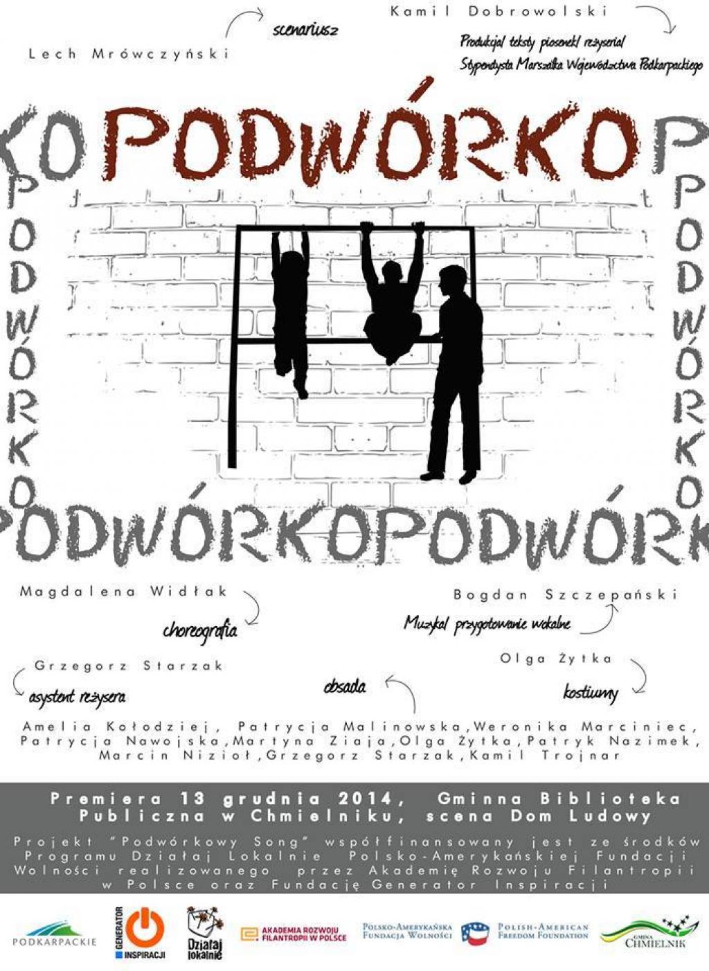 O tym jak powstawał Musical "Podwórko" było na naszej stronie trochę informacji. Najbardziej gorączkowe dni nastały jednak przed premierą, czyli 13 - tym grudnia. Oprócz podwojenia ilości prób, była również promocja przedstawienia w lokalnych mediach. Można było dzięki temu usłyszeć zwiastuny piosenek napisanych specjalnie dla tegoż wydarzenia, ale też zdobyć wejściówki na premierę.